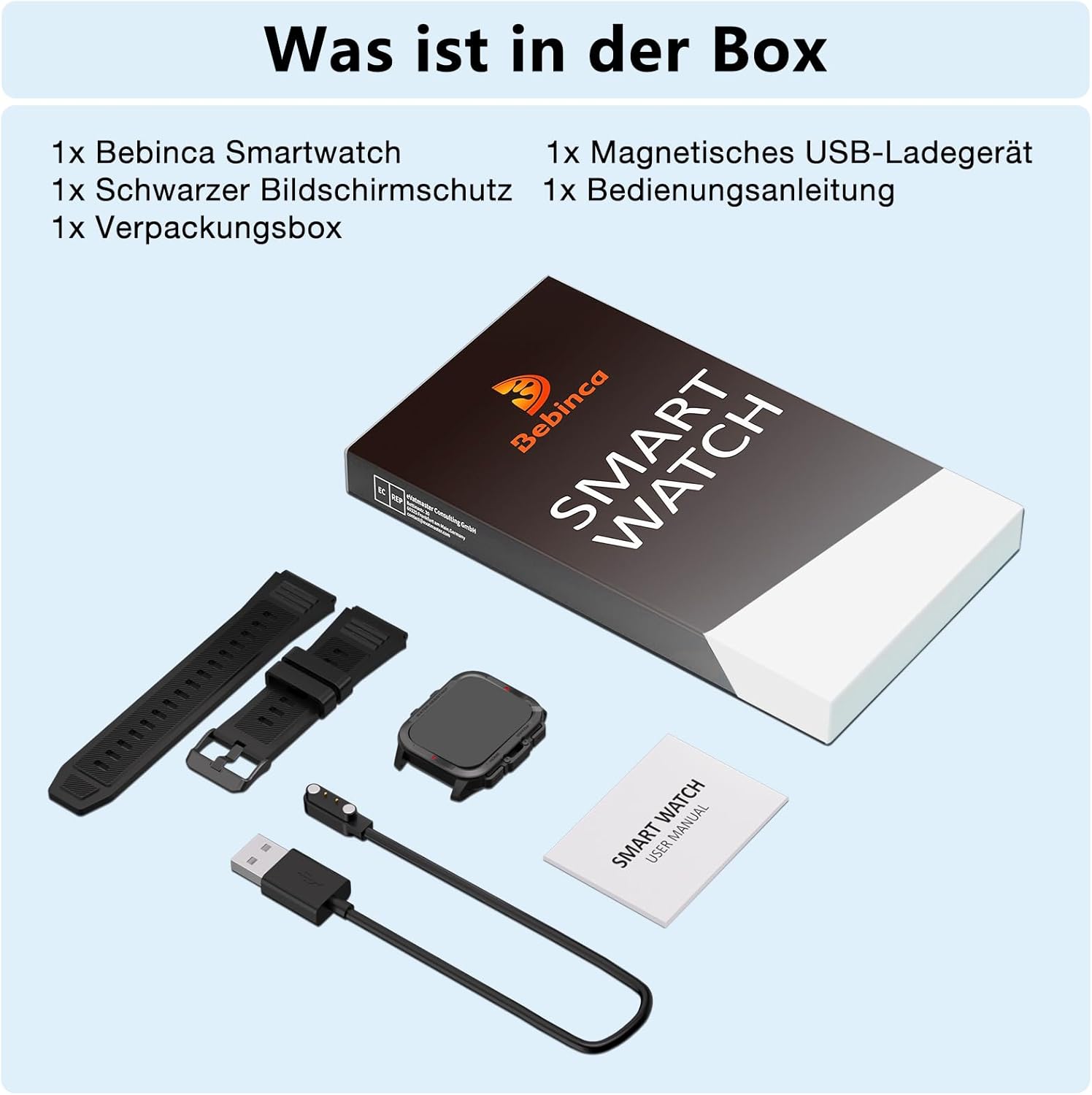 - 【24/7 Gesundheitsüberwachung】Die Bebinca Smartwatch für Herren bietet über 120 Sportmodi, die den Bedürfnissen der meisten Sportbegeisterten gerecht werden. Sie verfolgt automatisch Schritte, Entfernungen und Kalorien. Mit IP68-Wasserdichtigkeit