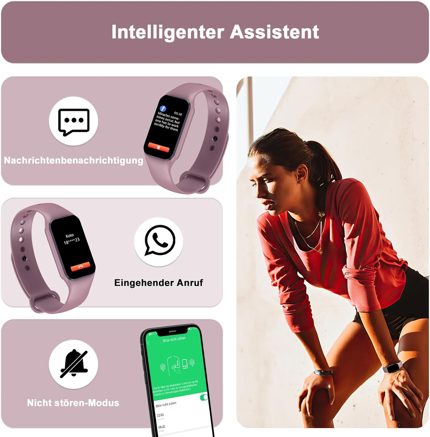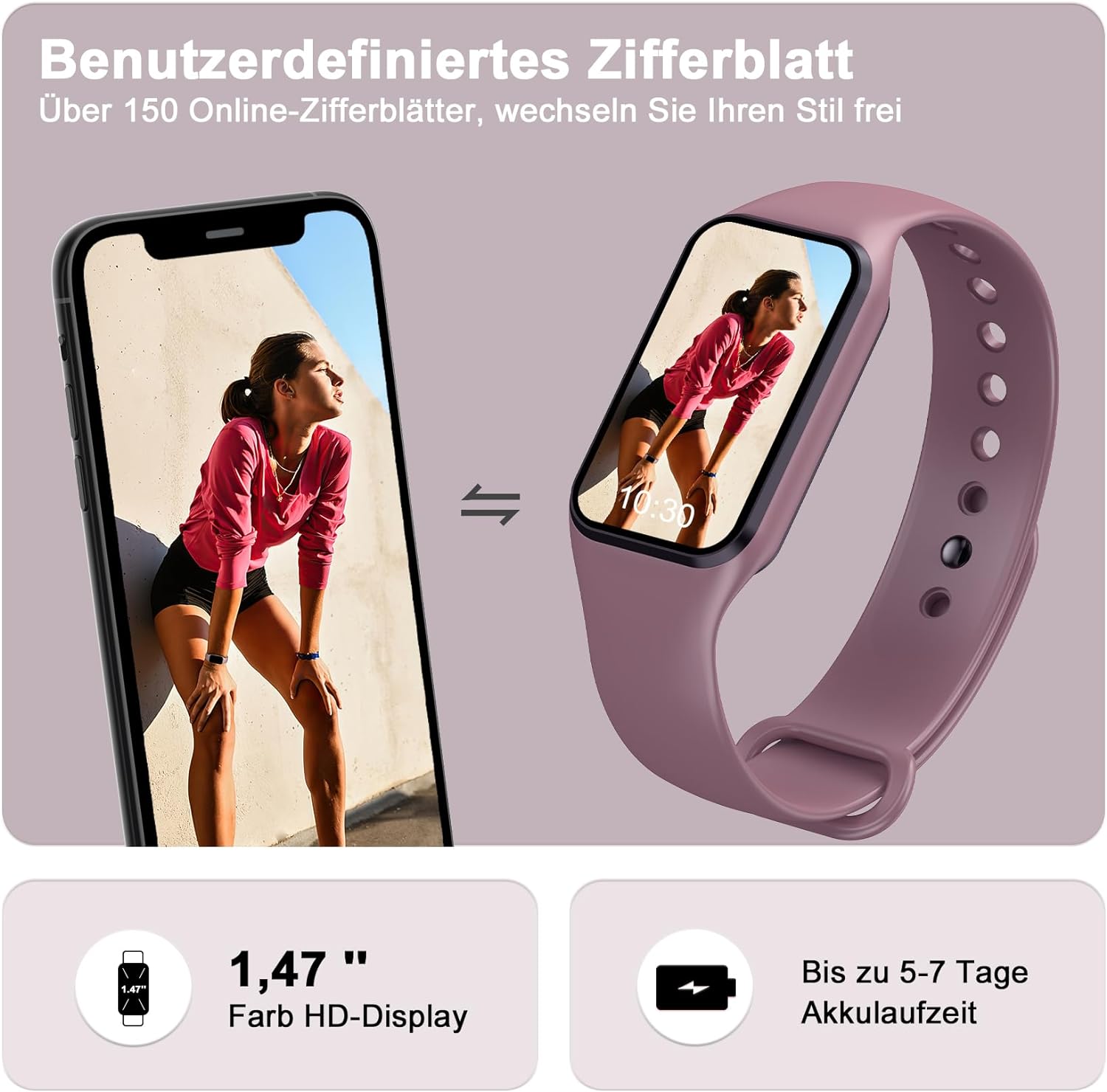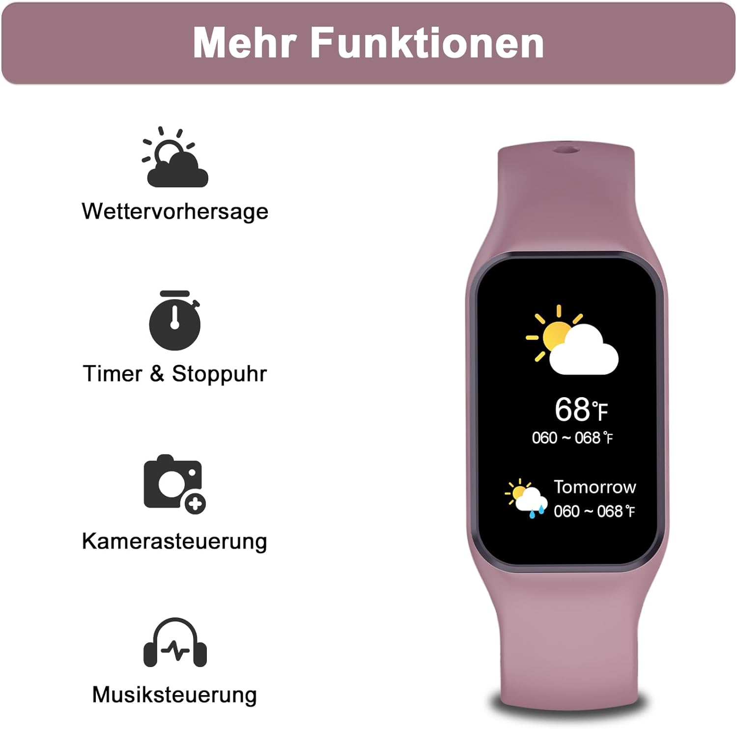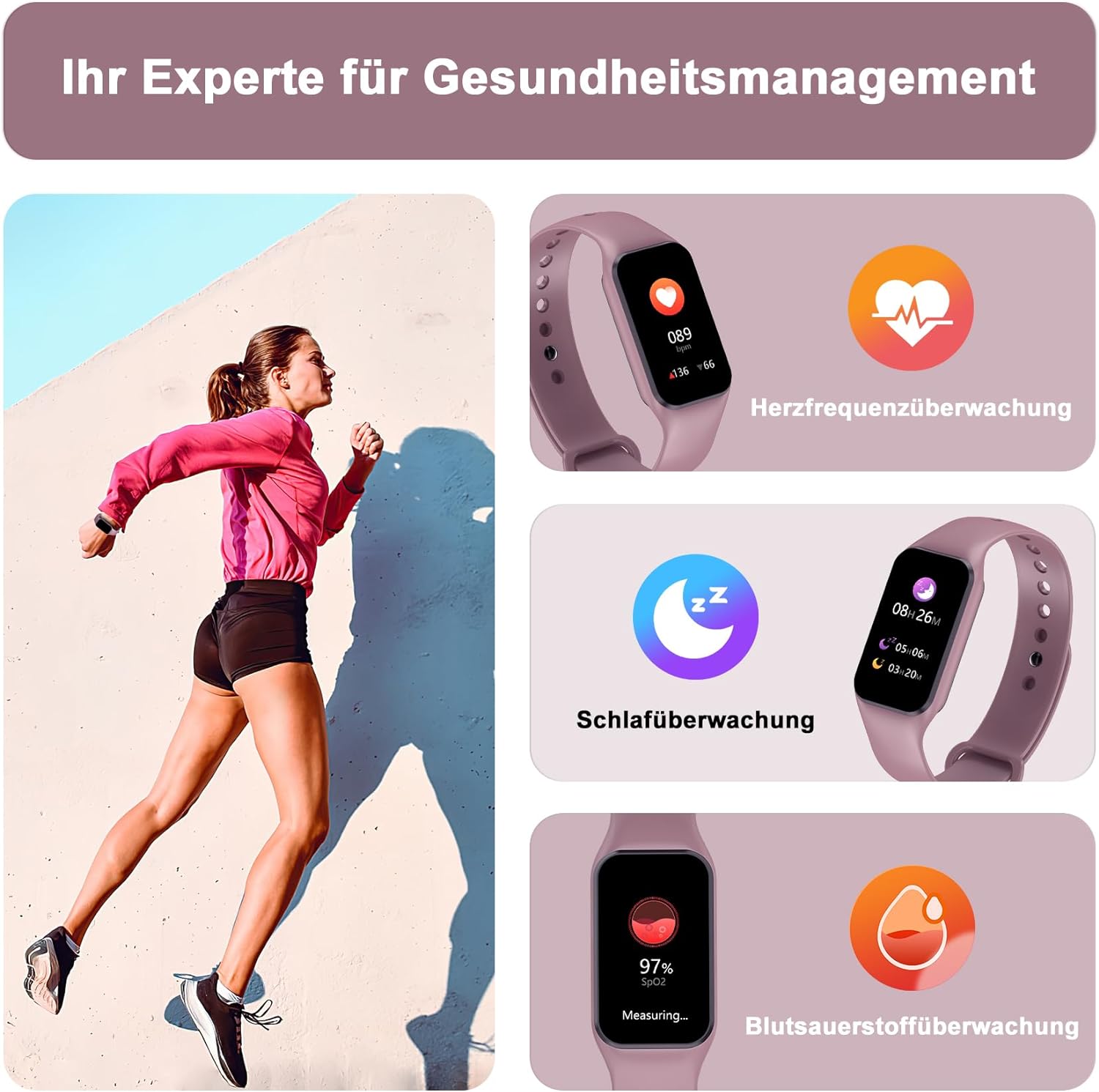 - 【Gesundheitsdatenüberwachung】Die Fitnessuhr verfügt über einen integrierten optischen Tracking-Sensor, der automatisch Ihre Herzfrequenz und Ihren Blutsauerstoff 24 Stunden am Tag Intermittierend überwacht und nachts Ihren Schlafstatus