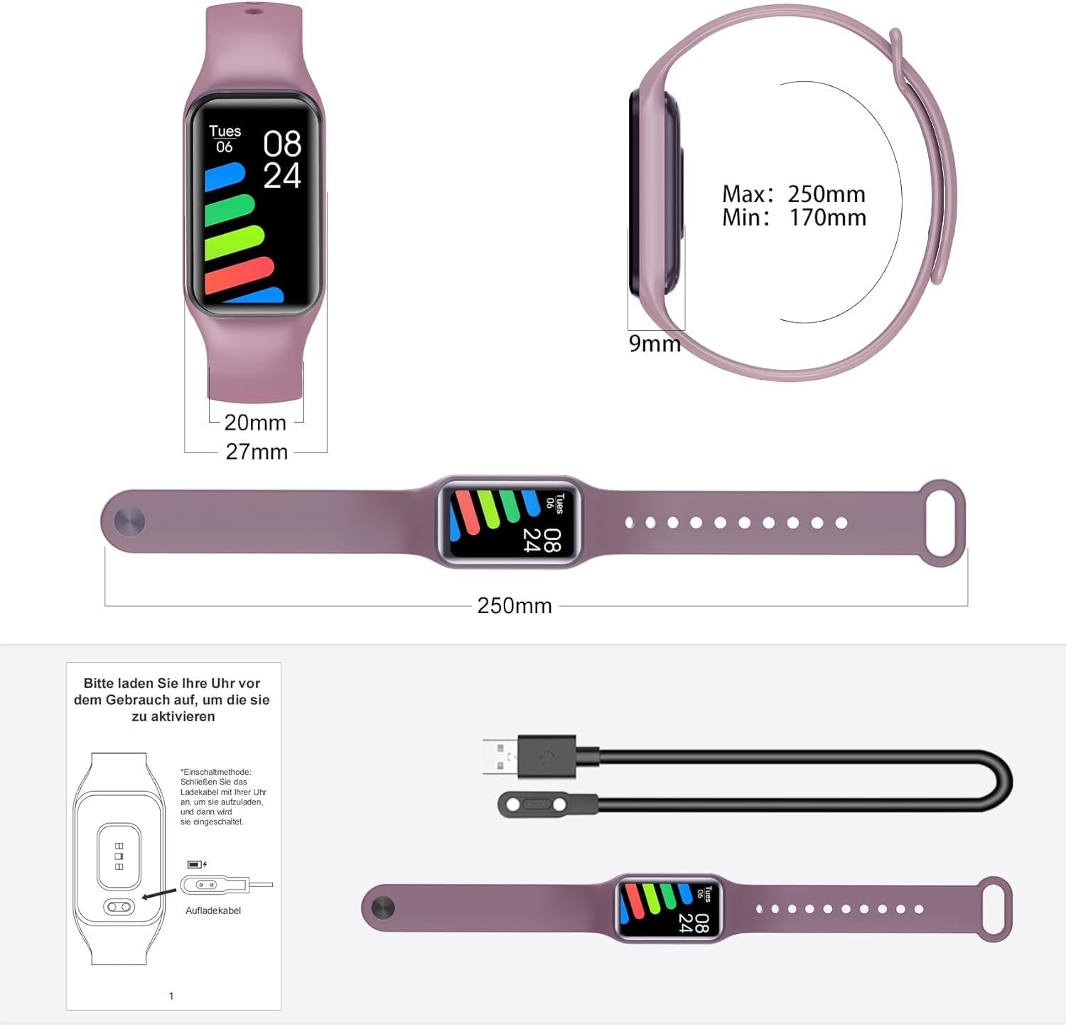 - 【Kompatibilität und Akku】Die Smartwatch ist mit den meisten Android- und iOS-Smartphones auf dem Markt kompatibel. Die Uhr verfügt über einen 180mAh Akku, der ein 2-stündiges Schnellladen unterstützt, die Energie kann für 5-7 Tage verwendet