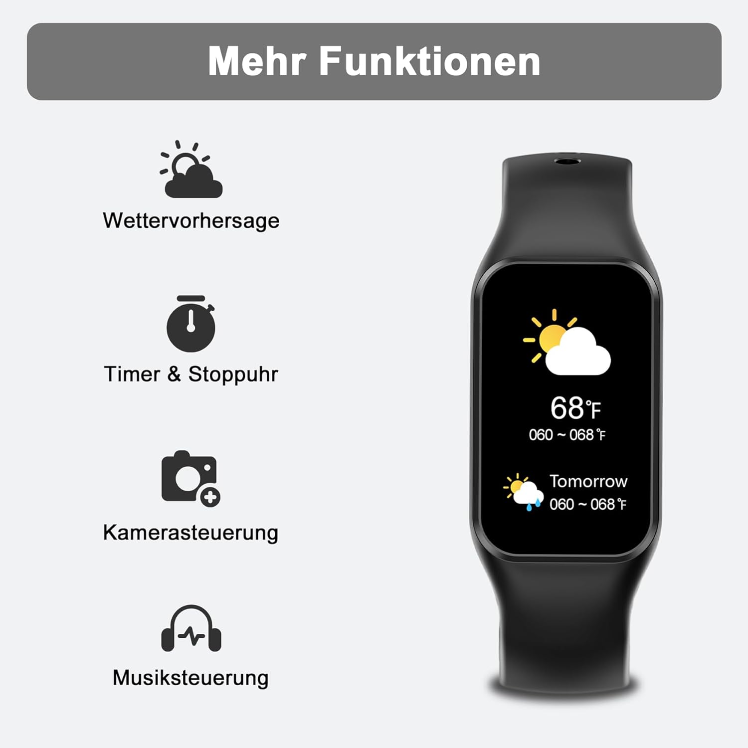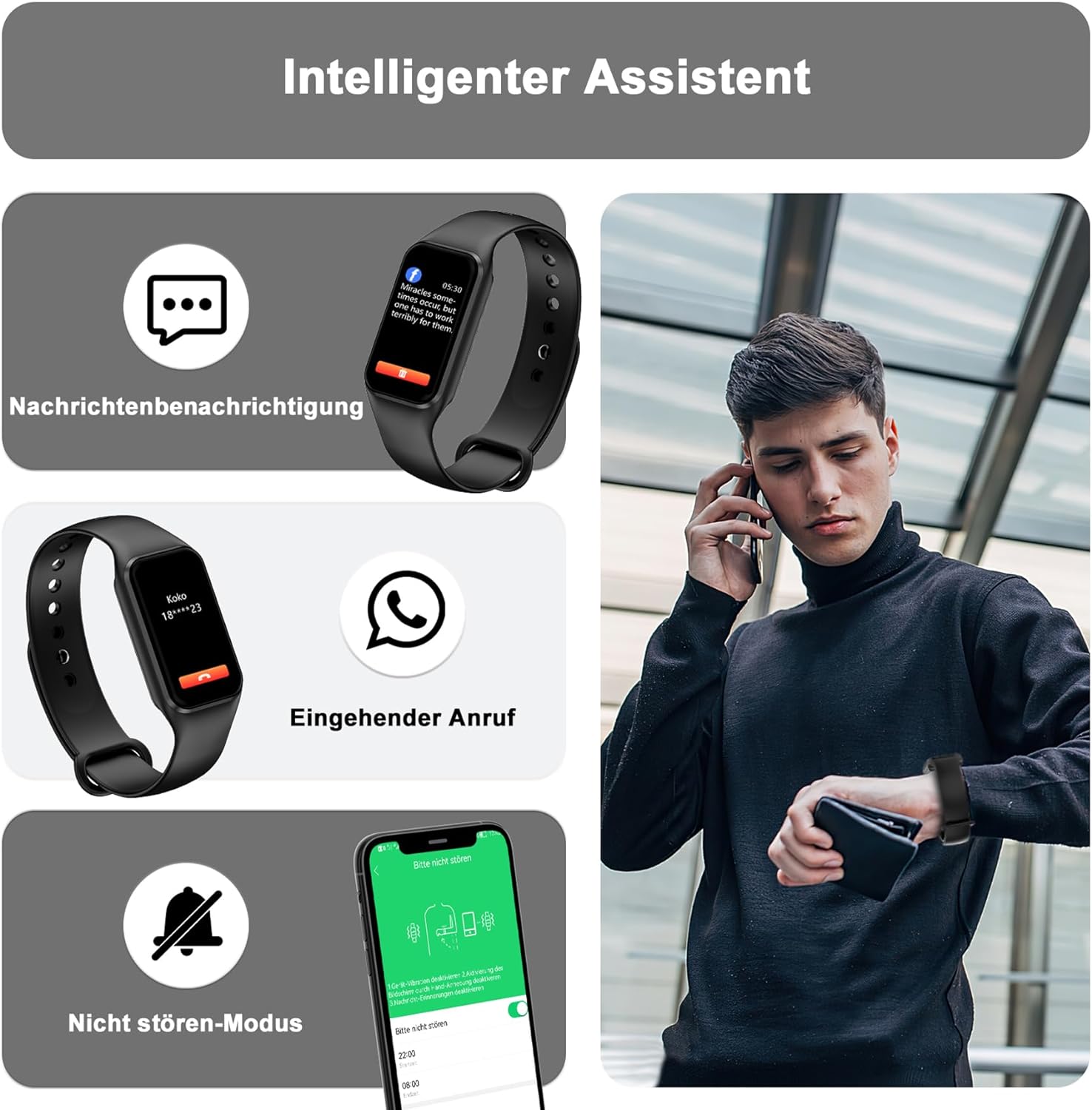 - 【Erleben Sie ein komfortables intelligentes Leben】Laden Sie die "GloryFit" App herunter, um weitere nützliche Funktionen für Ihre Smartwatch freizuschalten: Nachrichtenerinnerung (SMS, WhatsApp, Instagram, Facebook usw.), Anruferinnerung,