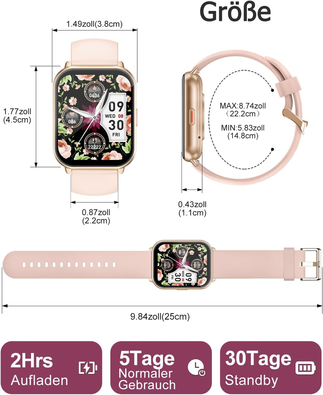 - ⌚【Vollständiger Touchscreen und angenehmes Tragen】 Diese Smartwatch ist mit einem 1,69-Zoll-Farb-Touchscreen und mehreren Zifferblättern zur Auswahl ausgestattet, die die Bedienung und das Lesen der Daten erleichtern. Das verstellbare Armband dieser weichen und leichten Uhr ist für Männer, Frauen und Teenager geeignet. Perfekt für Oster-, Weihnachts- und Geburtstagsgeschenke.