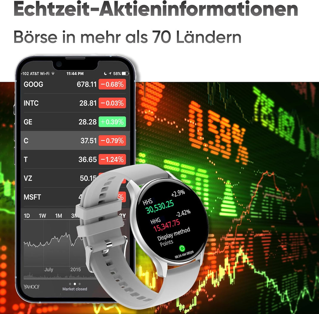 - đŁïžăSprachassistenten-Funktion & Börsen-Trackeră - Sie können AI Sprachbefehl verwenden, indem Sie mit Ihrem Smarwatch fĂŒr Ihr Smartphone steuern (kompatibel fĂŒr Android & iOS **Hinweis** Die FĂ€higkeit, nach dem Telefonmodell zu verwenden) /