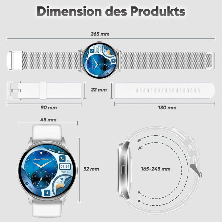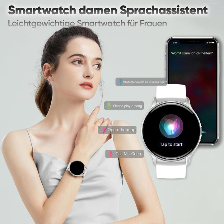 - đăAmoled Smartwatch damen mit telefonfunktionă- Smartwatch zum telefonieren, Sie können Ihre Anrufe mit Bluetooth-Verbindung zu uhr smartwatch damen leicht verwalten, so können Sie Anrufe in jeder Situation ablehnen oder annehmen und verpassen