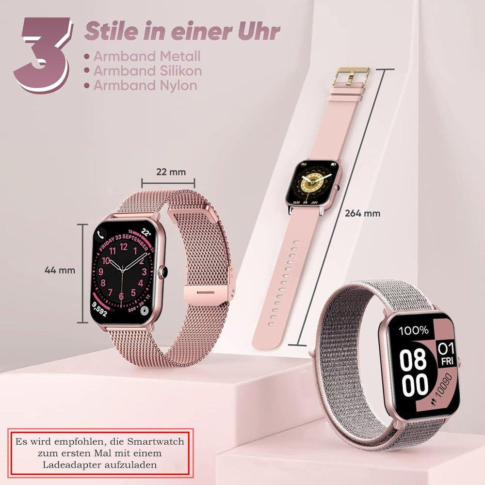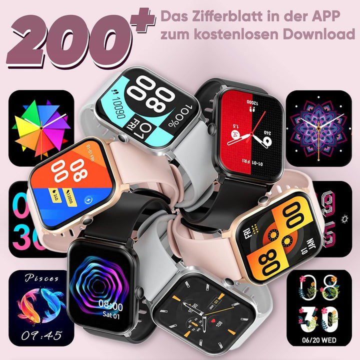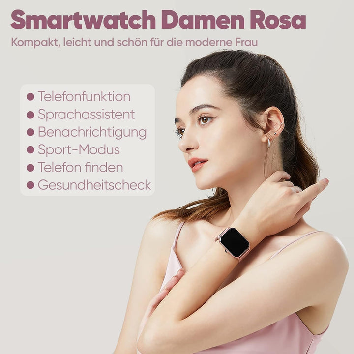 - 📞【Smartwatch damen mit telefonfunktion 1.85"】- Smartwatch zum telefonieren, Sie können Ihre Anrufe mit Bluetooth-Verbindung zu uhr smartwatch damen leicht verwalten, so können Sie Anrufe in jeder Situation ablehnen oder annehmen und verpassen