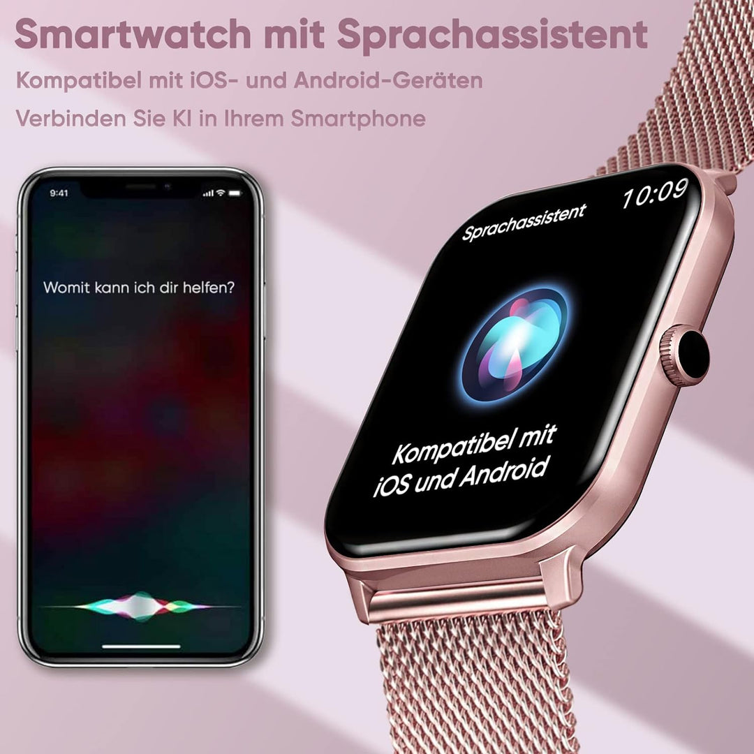 - 🗣️【AI-Sprachfunktion & 100 Sporttrainingsmodus】 - Sie können AI Sprachbefehl verwenden, indem Sie mit Ihrem Smarwatch für Ihr Smartphone steuern (kompatibel für Android & iOS **Hinweis** Die Fähigkeit, nach dem Telefonmodell zu verwenden) /