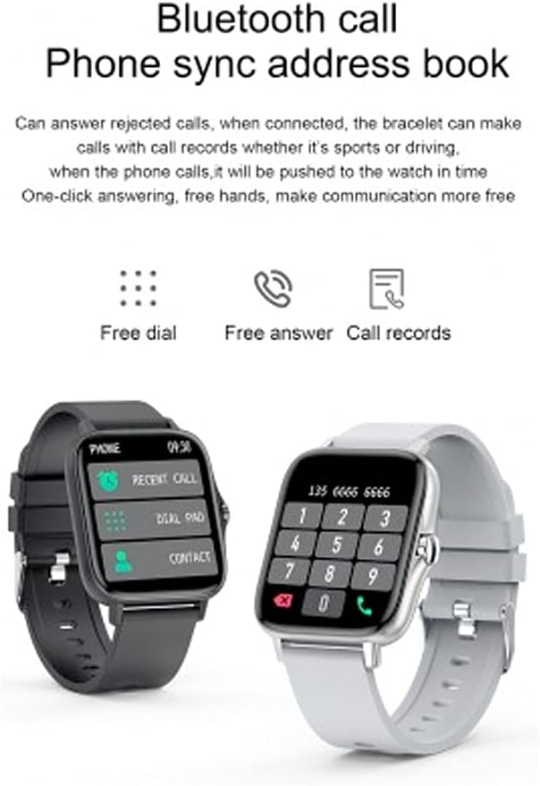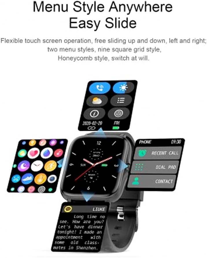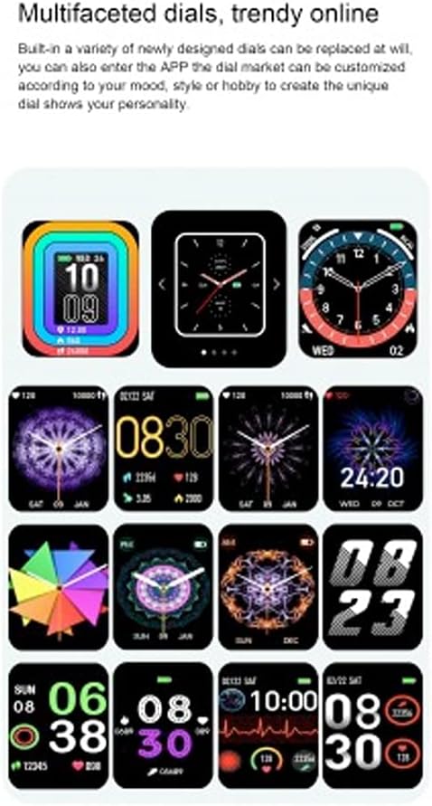 - Anpassbarer 1,7-Zoll-HD-Touchscreen mit mehreren Designs Herzfrequenzmesser, Schrittzähler, Kilometer und Kalorien