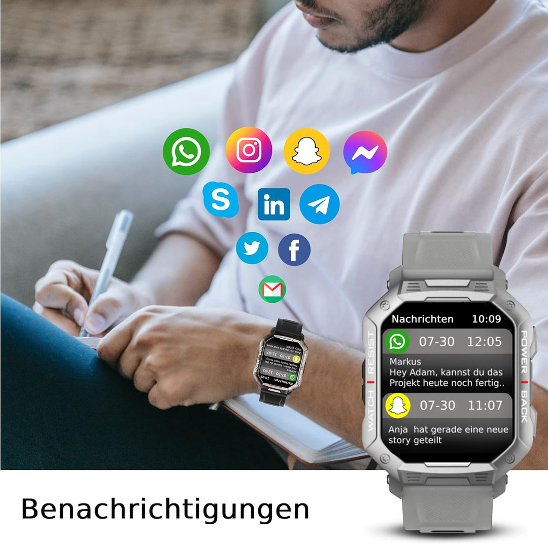 - đ [Telefonfunktion & Benachrichtigungen ] Der Lautsprecher und das Hochleistungsmikrofon ermöglichen es Ihnen, Anrufe auf Ihrer Smartwatch zu tĂ€tigen, ohne Ihr Telefon herausnehmen zu mĂŒssen. Sie können eingehende/ausgehende Anrufe annehmen und