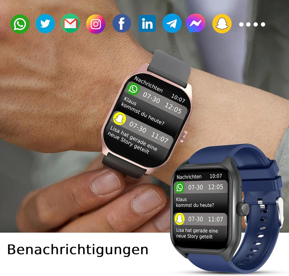 - đ [Telefonfunktion & Benachrichtigungen ] Der Lautsprecher und das Hochleistungsmikrofon ermöglichen es Ihnen, Anrufe auf Ihrer Smartwatch zu tĂ€tigen, ohne Ihr Telefon herausnehmen zu mĂŒssen. Sie können eingehende/ausgehende Anrufe annehmen und