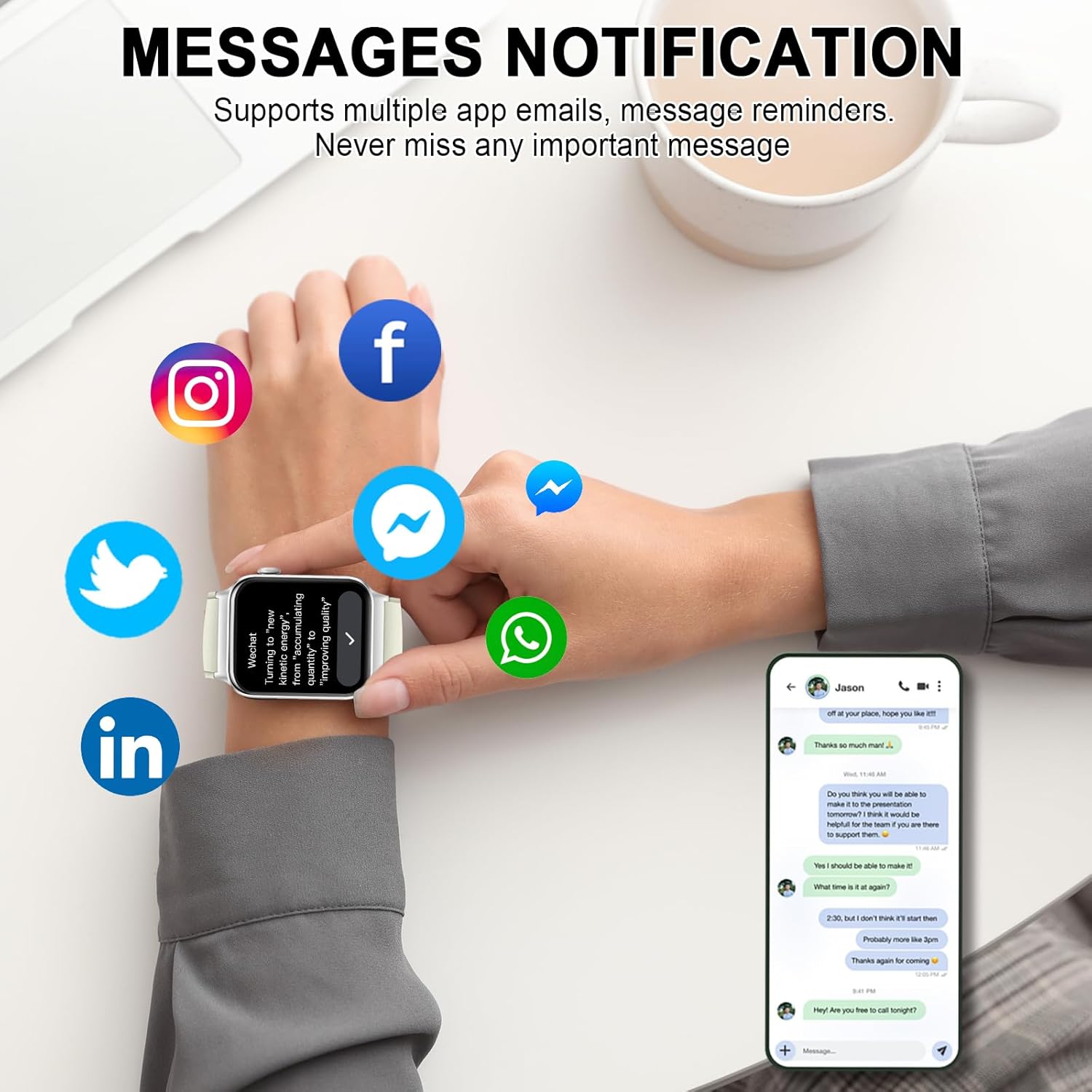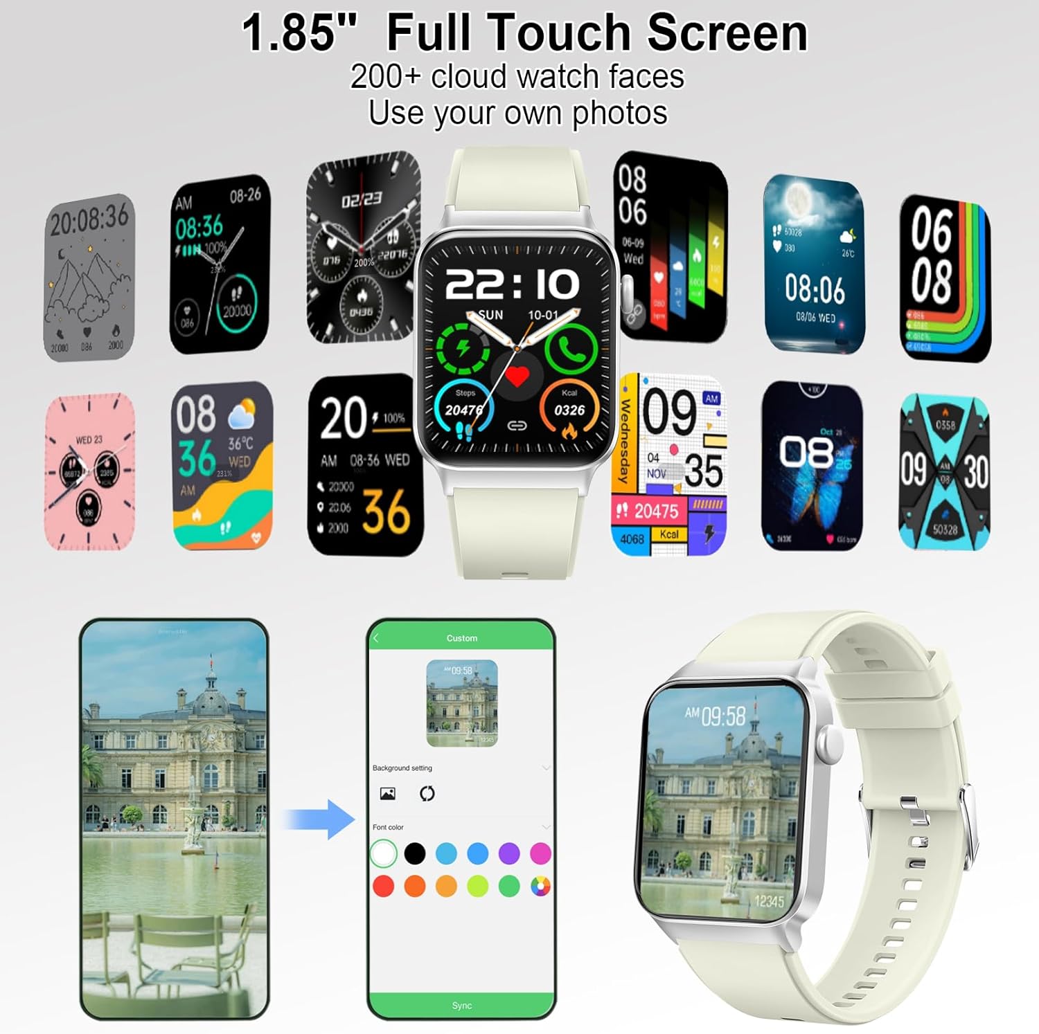 - 1,85 Zoll Volltouchscreen und Personalisiertes Zifferblatt: Die T50 Smartwatch Damen Herren mit HD Farbbildschirm und Metallgehäuse bieten Ihnen eine hervorragende Bildqualität und visuelles Erlebnis. Einstellbare 4-stufige Bildschirm-Helligkeit, er