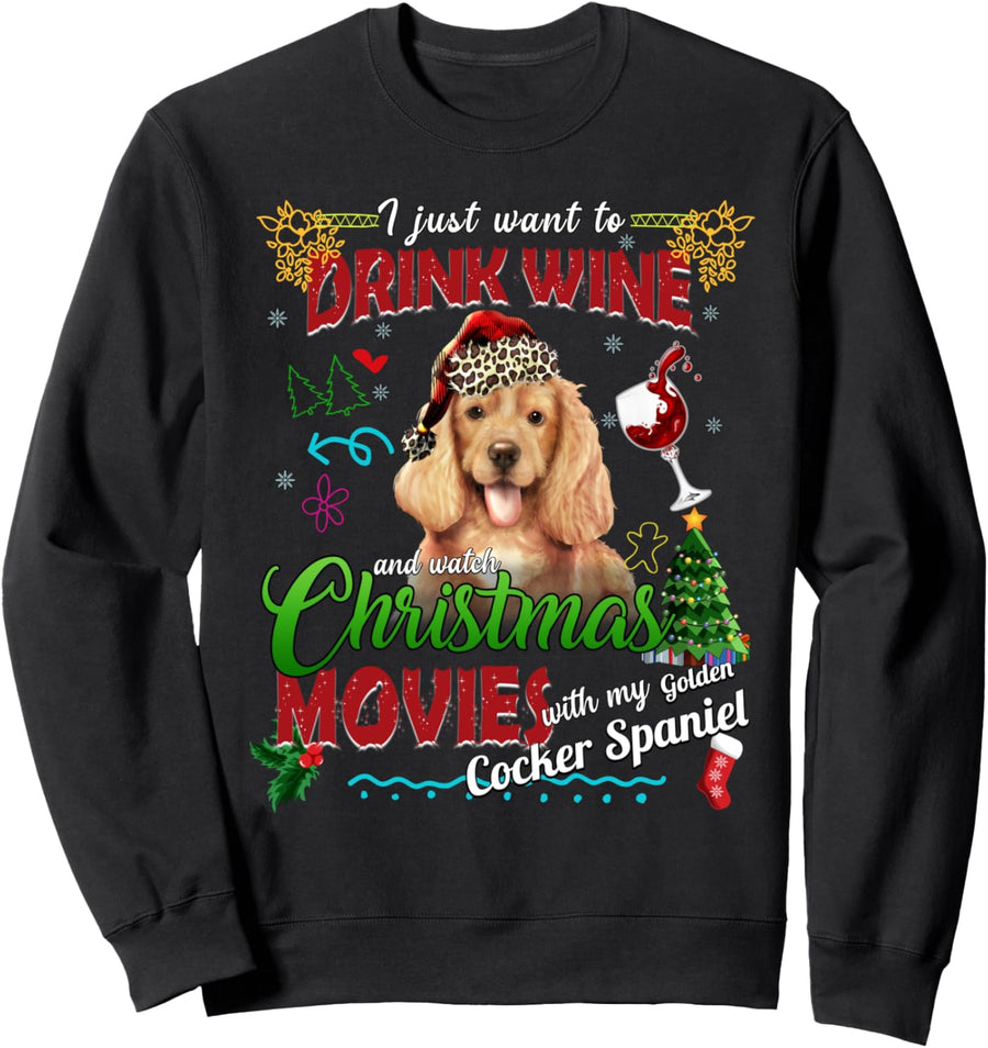 PRODUKTBESCHREIBUNGEN Merry Christmas Wine Lover Cocker Spaniel Dog Gift. Drink Wine Watch Christmas Movies With My Cocker Spaniel Dog. I just want to drink wine and watch Christmas movies with My Golden Cocker Spaniel gift ugly Christmas gift shirt idea, Perfect red or white wine lover Christmas gift for men or women that love wine and are Cocker Spaniel dog breed owners. This makes a cute gift for the dog lover in your life - it's not drinking alone if the dog is at home. Awesome Christmas pajama shirt gift idea for a Cocker Spaniel dog mom or dad and wine lover gifts for women men.