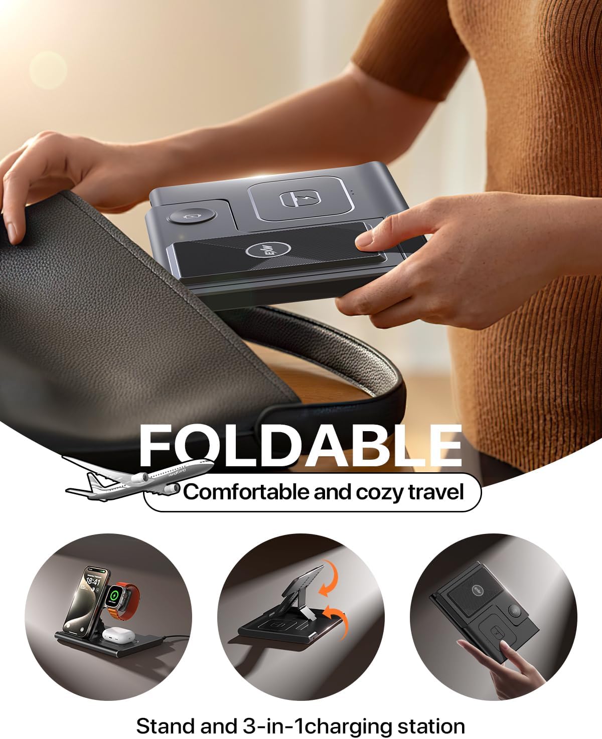 - Tragbar und faltbar Im Gegensatz zu anderen herkömmlichen Ladestationen nimmt unsere kabellose Ladestation das faltbare Design an. Wenn es vollständig gefaltet ist, hat es ungefähr die Grösse eines Laptops und nur 19,6 g, können Sie es als Ihr