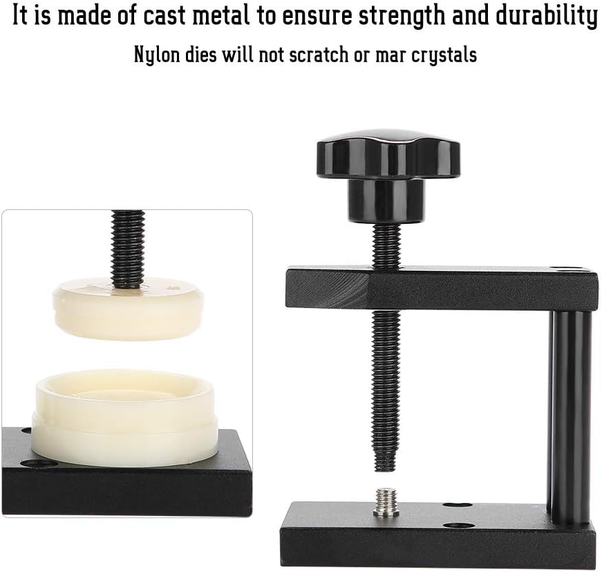 - MOLD QUALITY: The watch press tool is made of metal, firm, hard, durable,the base of this machine is made of metal for superior strength to open the hardest part of the watches.Including 12 nylon dies that will not scratch or mar crystals.