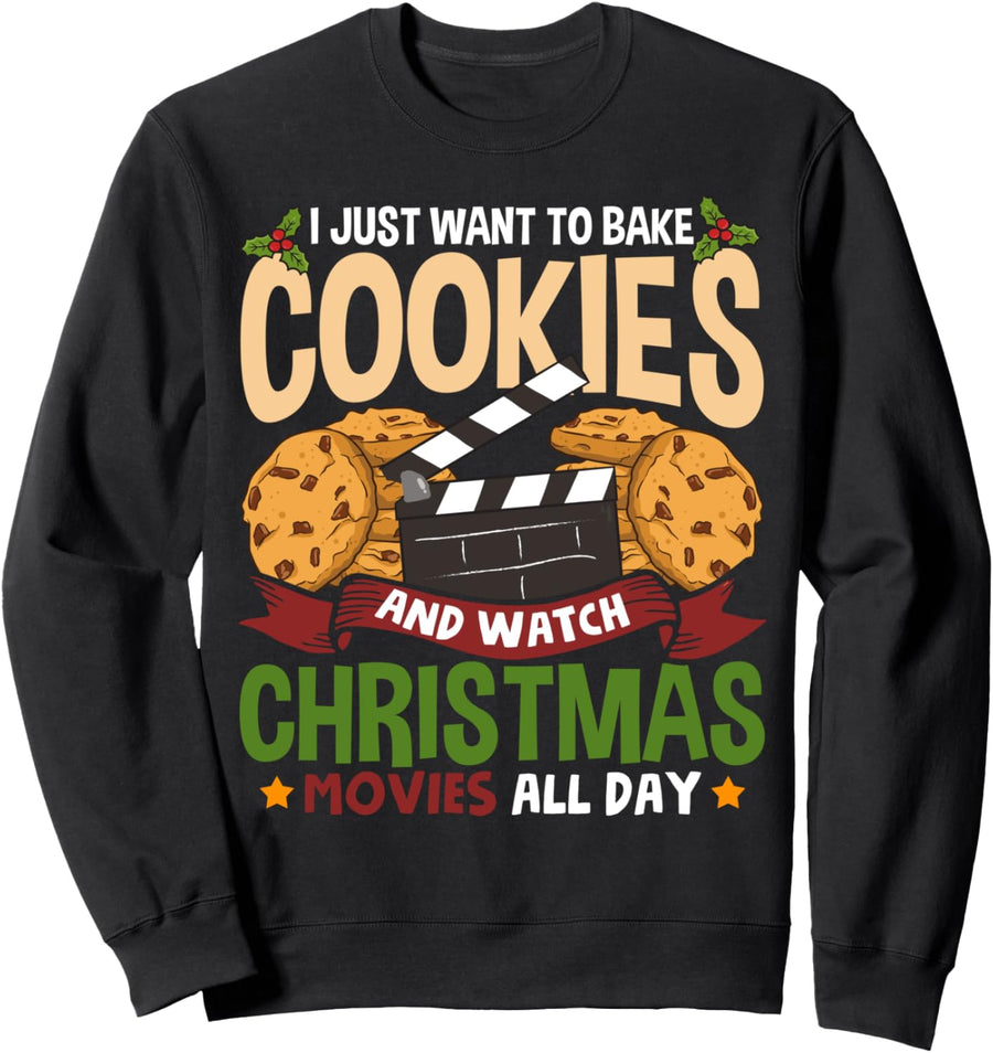 Funny I Just Want to Bake Cookies and Watch Christmas Movies Sweatshirt