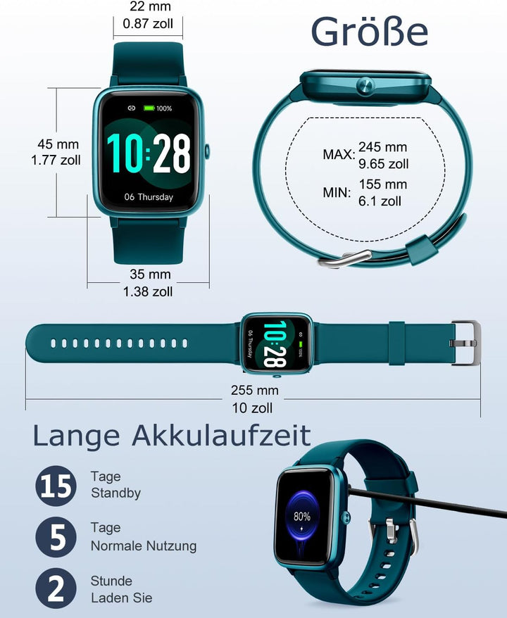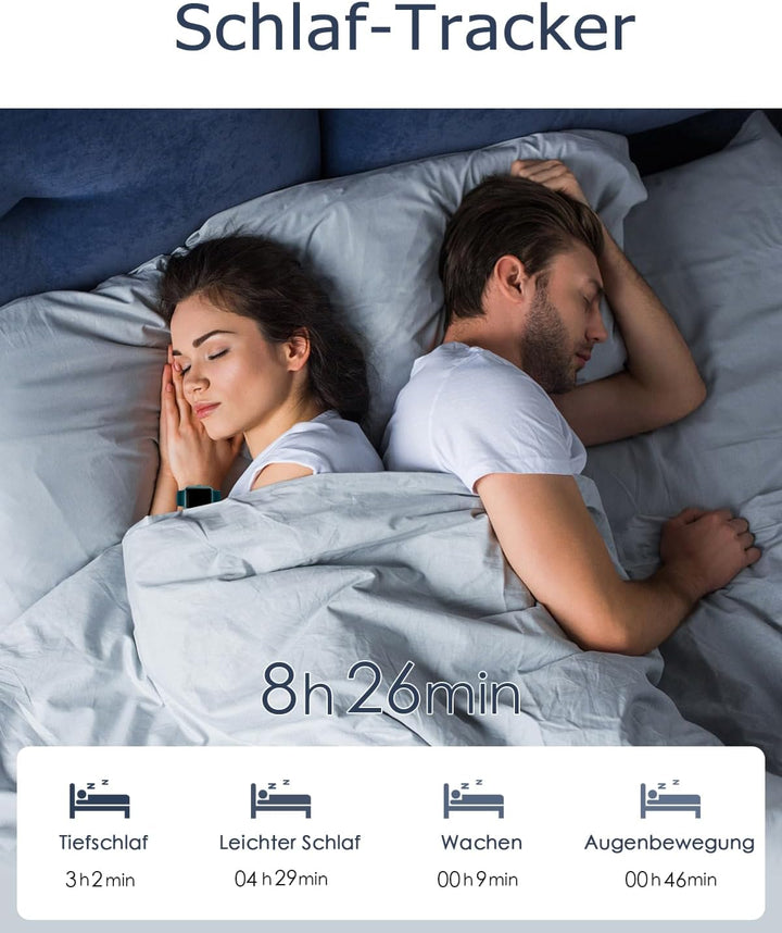 - ★ [ Über Gesundheit ] Die Smartwatch überwacht und zeichnet automatisch 24 Stunden Ihre Herzfrequenz und Ihre Schlafdaten auf, synchronisiert sich mit der APP, um das Herzfrequenzdiagramm und die Schlaftrends anzuzeigen, und hilft Ihnen, Ihre