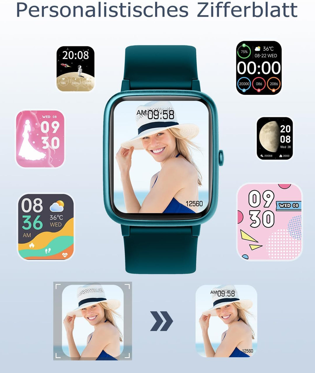 - ★ [ DIY Zifferblatt und Batterielebensdauer ] Die Smartwatch unterstützt benutzerdefinierte Zifferblätter, laden Sie Ihr eigenes Bild hoch oder wählen Sie das Zifferblatt aus der App, die nach verschiedenen Szenarien ausgewählt werden können und