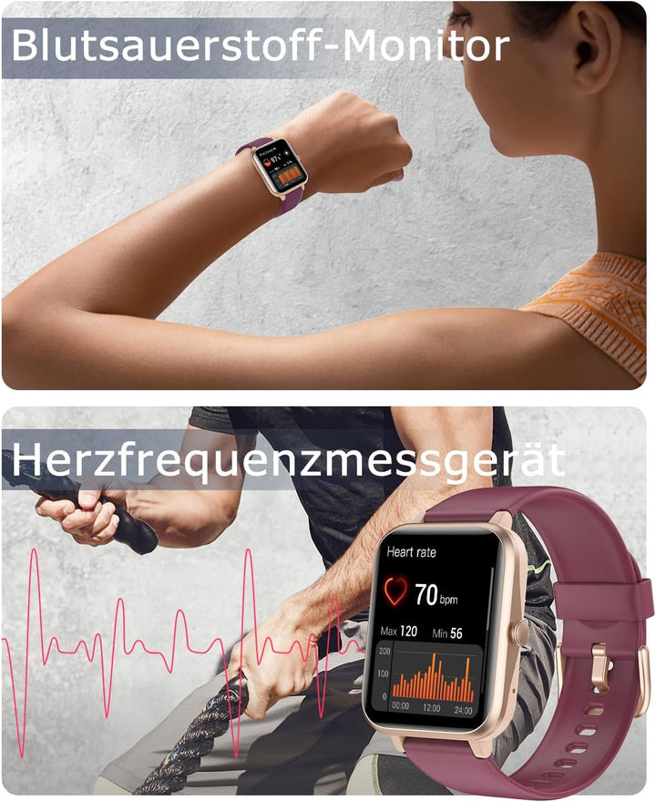 - ★ [ 100+ Sportmodus und tägliche Aufzeichnung] Die Fitnessuhr verfügt über 100+ verschiedene Sportmodi, die alle Ihre Anforderungen an Sport im Innen- und Aussenbereich erfüllen. Die Smartwatch verwendet hochpräzise Bewegungssensoren, optimiert