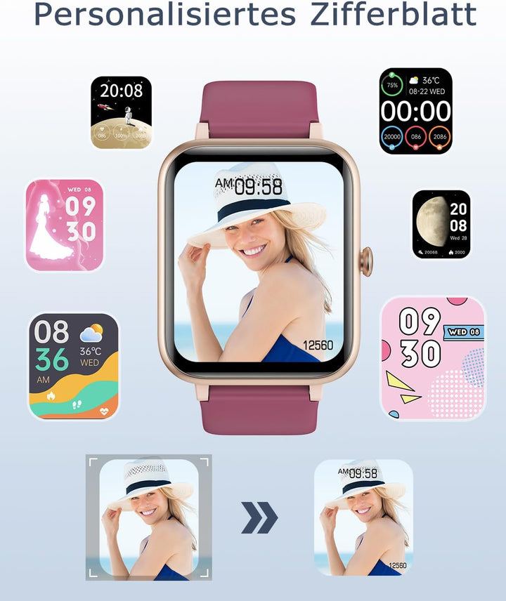 - ★ [ DIY Zifferblatt und Batterielebensdauer ] Die Smartwatch unterstützt benutzerdefinierte Zifferblätter, laden Sie Ihr eigenes Bild hoch oder wählen Sie das Zifferblatt aus der App, die nach verschiedenen Szenarien ausgewählt werden können und