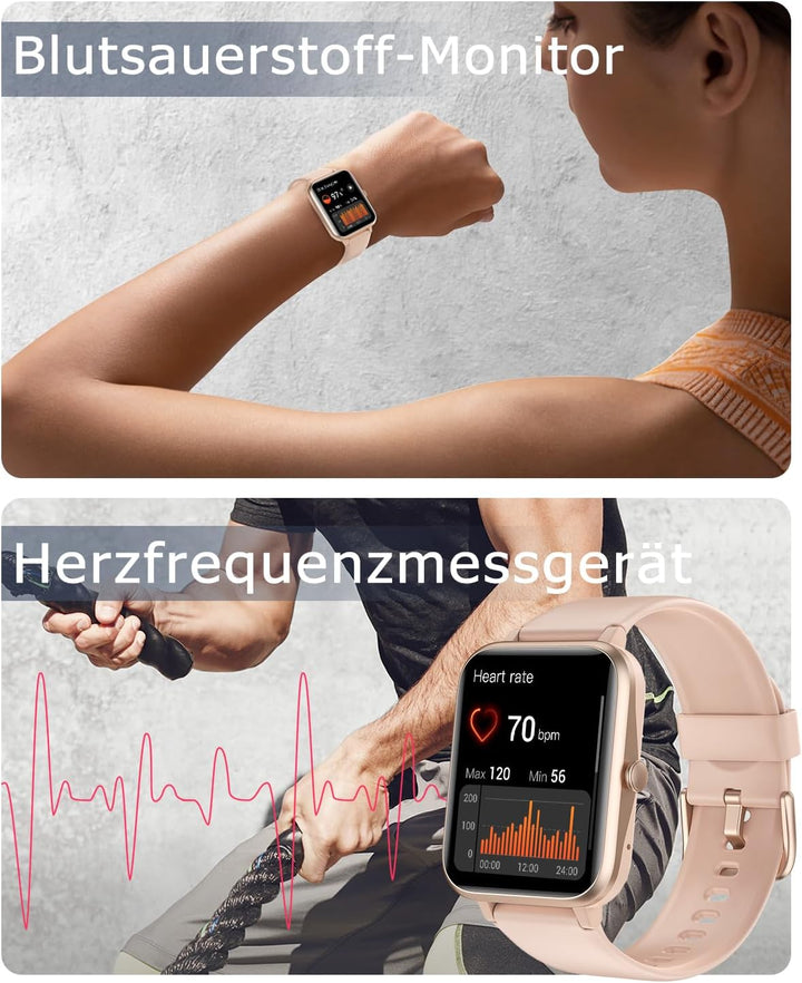 - ★ [ 100+ Sportmodus und tägliche Aufzeichnung] Die Fitnessuhr verfügt über 100+ verschiedene Sportmodi, die alle Ihre Anforderungen an Sport im Innen- und Aussenbereich erfüllen. Die Smartwatch verwendet hochpräzise Bewegungssensoren, optimiert