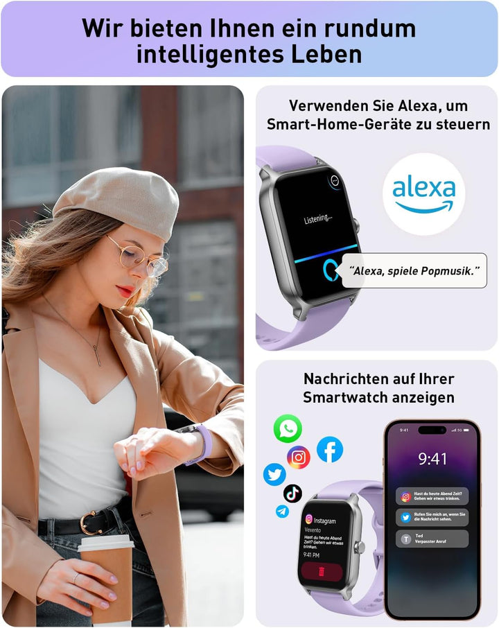 - 📞【Built-in Alexa&Bluetooth-Anrufe】Mit der Gydom Damen/Herren Smartwatch können Sie fast alles mit Ihrer Stimme machen. z.B. Musik abspielen, Informationen erwerbung (Wetter, Enzyklopädisches Wissen, Gesundheits- oder Sportdaten),