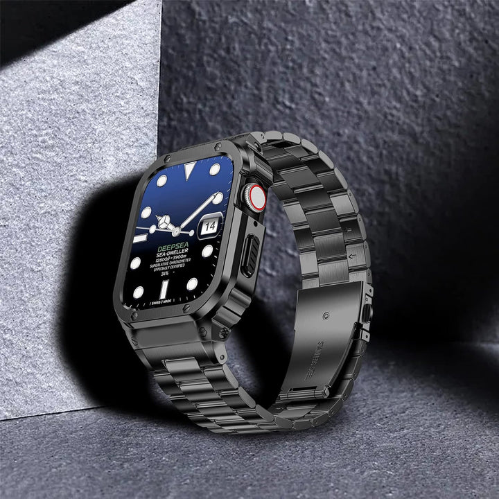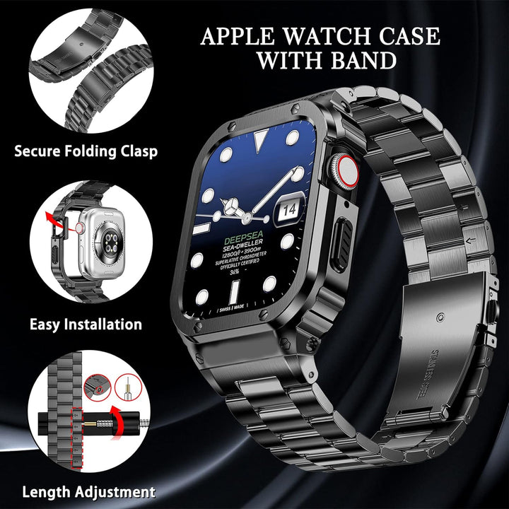 - 【Kompatibilität】Die Edelstahl Apple Watch Bänder mit Gehäuse passen für Apple Watch Series 9/8/7/6/5/4/SE/3/2/1(41mm/40mm/38mm), bitte wählen Sie die richtigen Grössen für Ihre Uhr. Mit exquisitem Aussehen Design, die Apple Watch Cover sieht