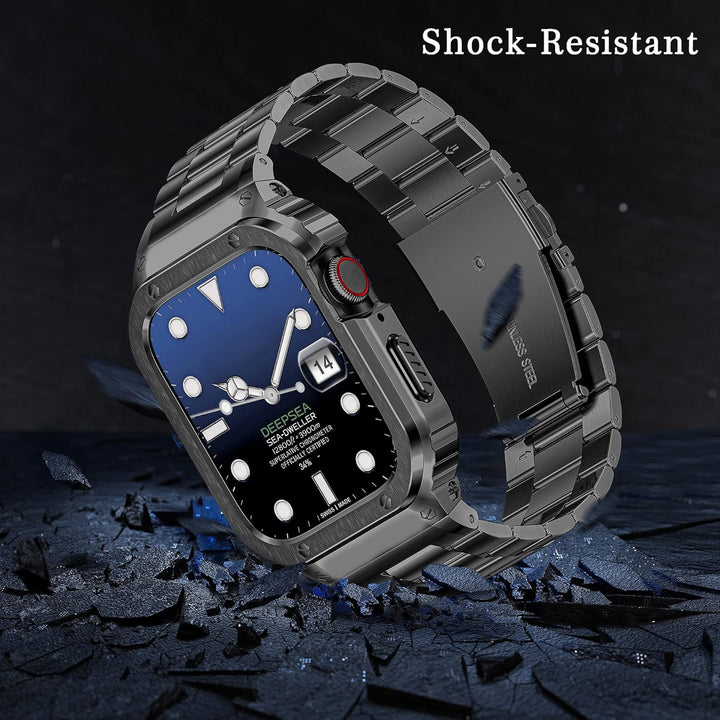 - 【Edelstahl-Metallgehäuse】Das Metall-Apfeluhrband ist poliert und aus hochwertigem Edelstahl gefertigt, viel haltbarer und robuster. Bereitstellung von Schutzabdeckung gegen Stösse und Kratzer. Der stossfeste Apple Watch Fall kann genau mit allen