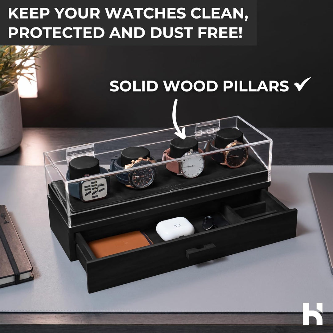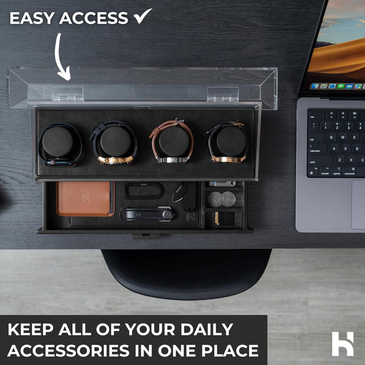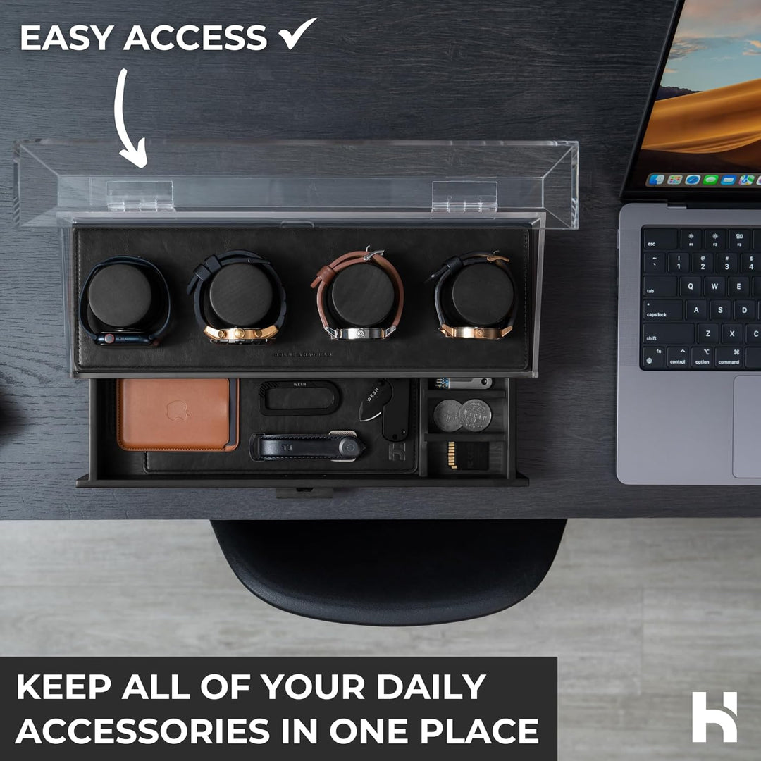 - Leichterer Zugang zu Ihren Uhren - Der Watch Deck Pro Uhrenkasten für Herren verfügt über einen innovativen Acryldeckel mit Scharnier, das sich um 90 Grad öffnen lässt. Jetzt ist es noch einfacher, auf Ihre Uhren zuzugreifen, ohne den Deckel