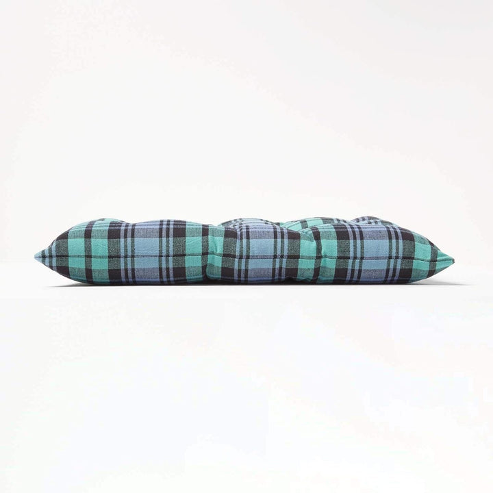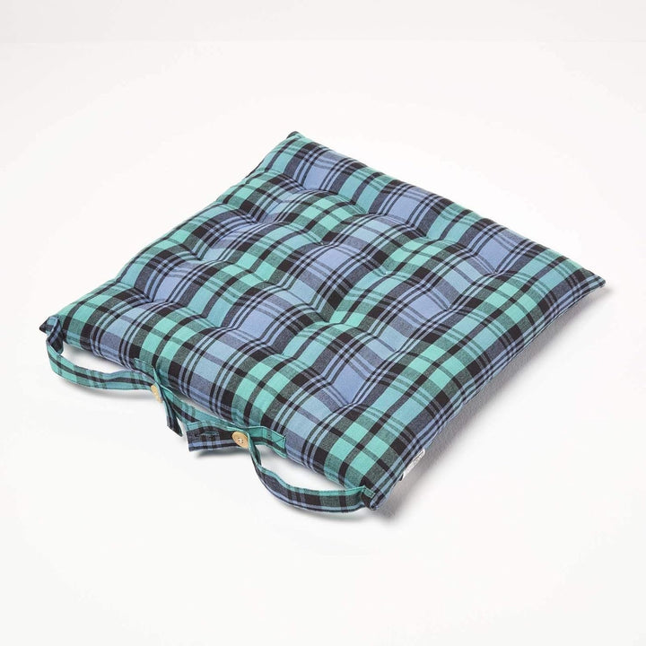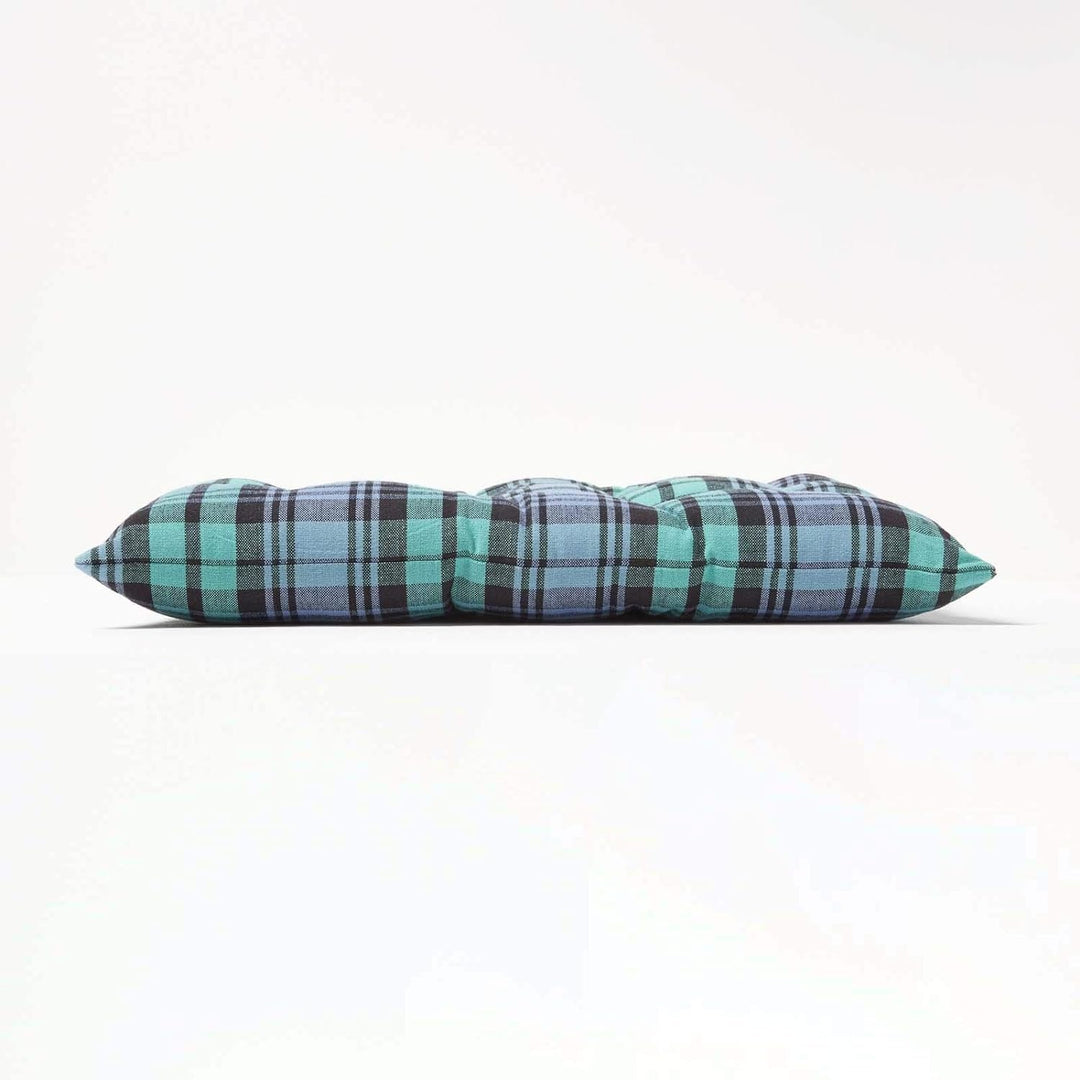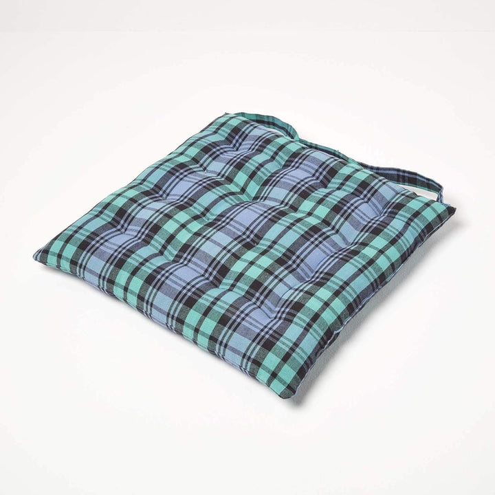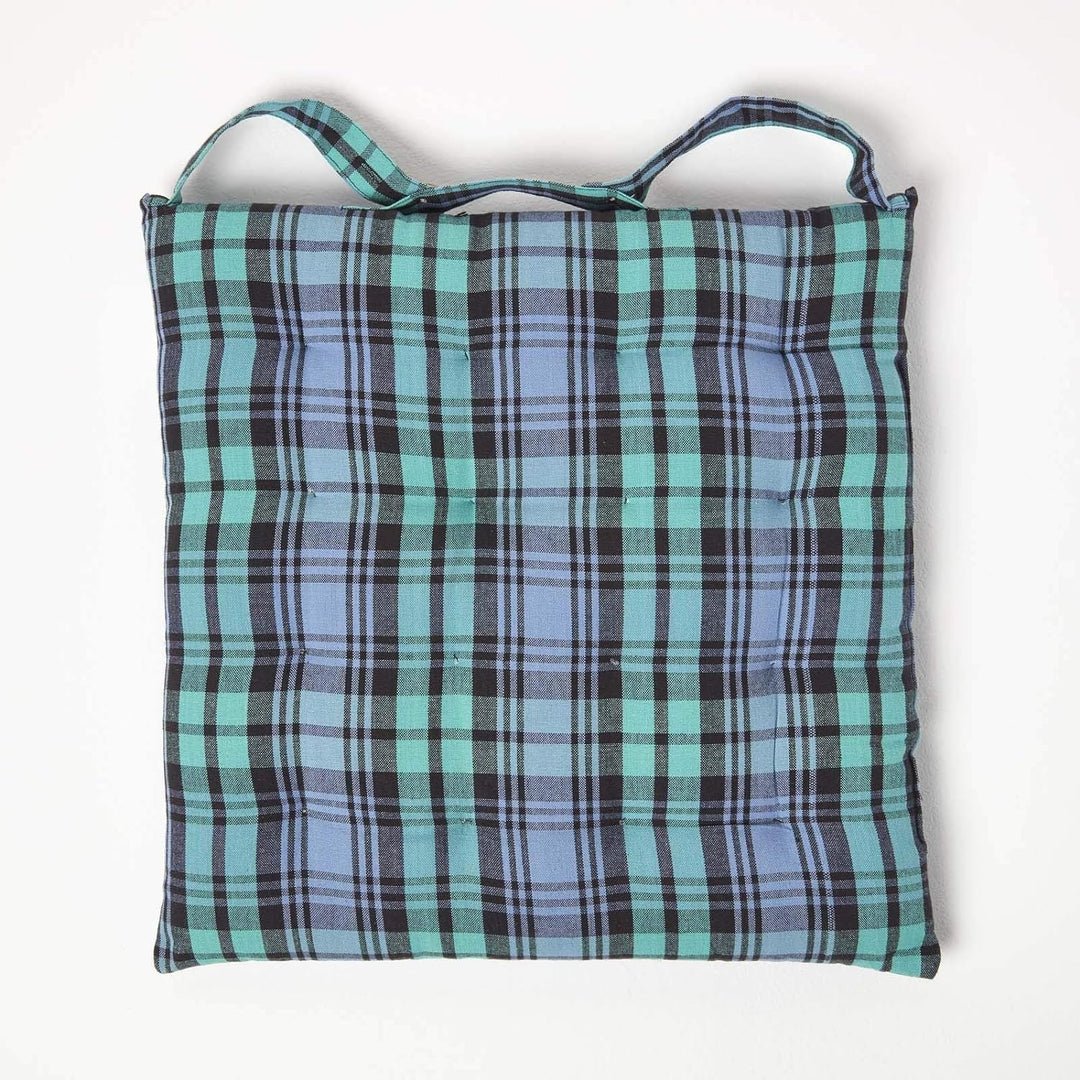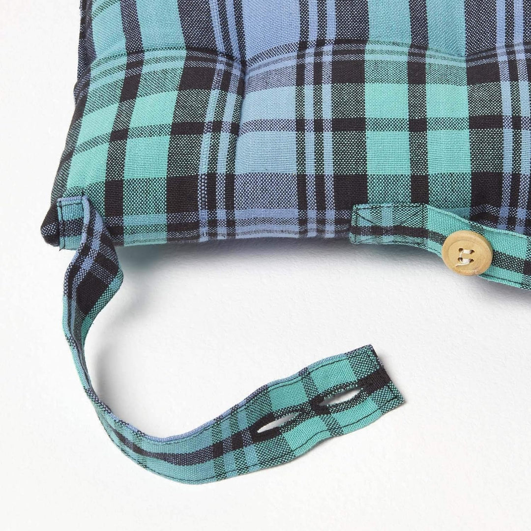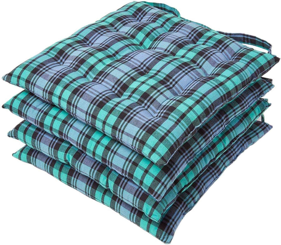 - Set aus 4 Sitzkissen mit Bändern und praktischem Knopfverschluss. Grösse: ca. 40 x 40 x 5 cm. Mehrfarbig: grün-blau.