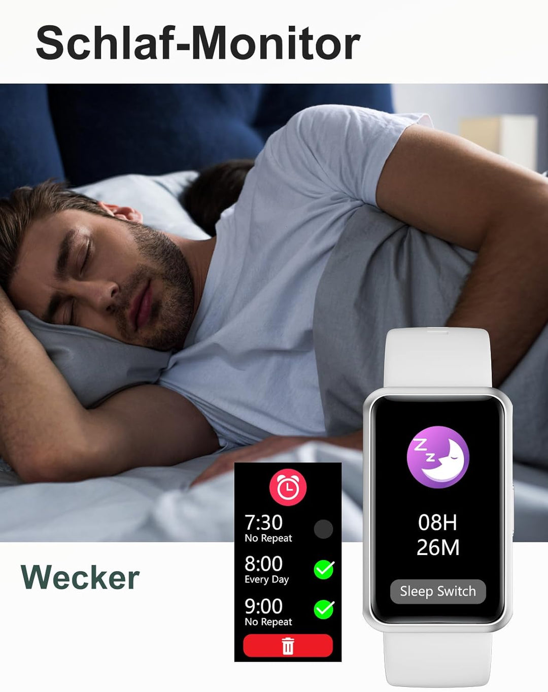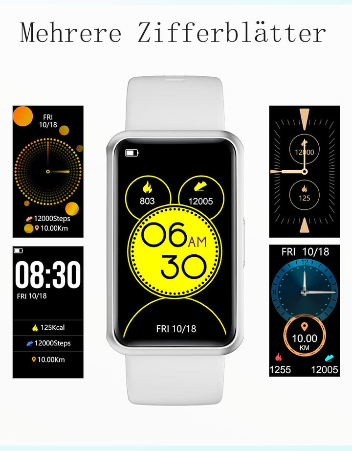 - 【Praktisches Werkzeug】Atemtraining, Schlafüberwachung, Stoppuhr, Timer, Wecker, Wassererinnerung, Bewegungserinnerung, 5 Zifferblätter, Bildschirm-Ausschaltzeit und andere Werkzeuge.
