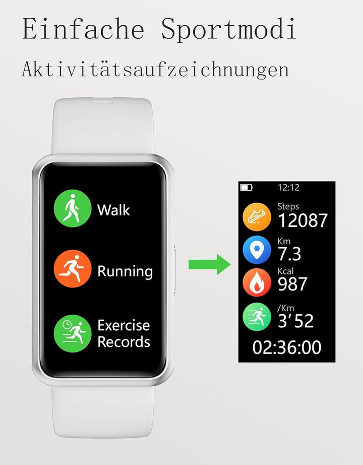 - 【Kein Bluetooth-Design】 Smartwatch hat keine Notwendigkeit, sich mit der App zu verbinden, kein Smartphone erforderlich, einfach die verbrannten Kalorien, Schritte, Entfernung, Uhrzeit und Datum überprüfen, mit Lauf- und Laufsportmodi.