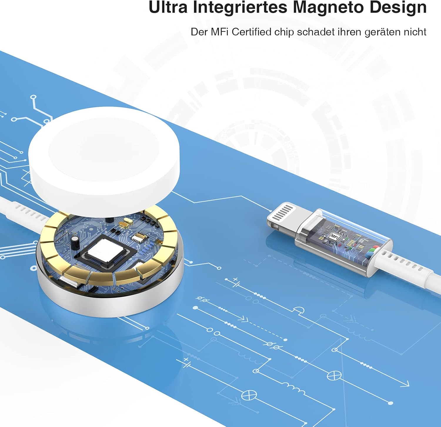 - 【Sicheres Laden für Geräte】 Unser Magnetladekabel von Apple Watch ist mit automatischer Chip-Erkennung, eingebauter magnetischer Lademodul, Überstrom, Überspannung und Übertemperaturschutz ausgestattet und bietet eine sichere Ladeumgebung für