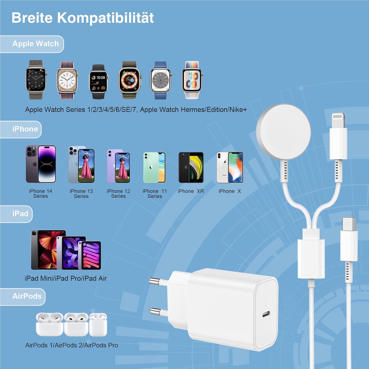 - 【Super Kompatibilität】 Dieses Ladegerät des Uhrenladegeräts nicht nur mit der Apple Watch -Serie kompatibel, sondern auch Apple Phones, einschliesslich Apple Watch Series 8, Apple Watch Series 7, Apple Watch Ultra. Unterstützt die Standard