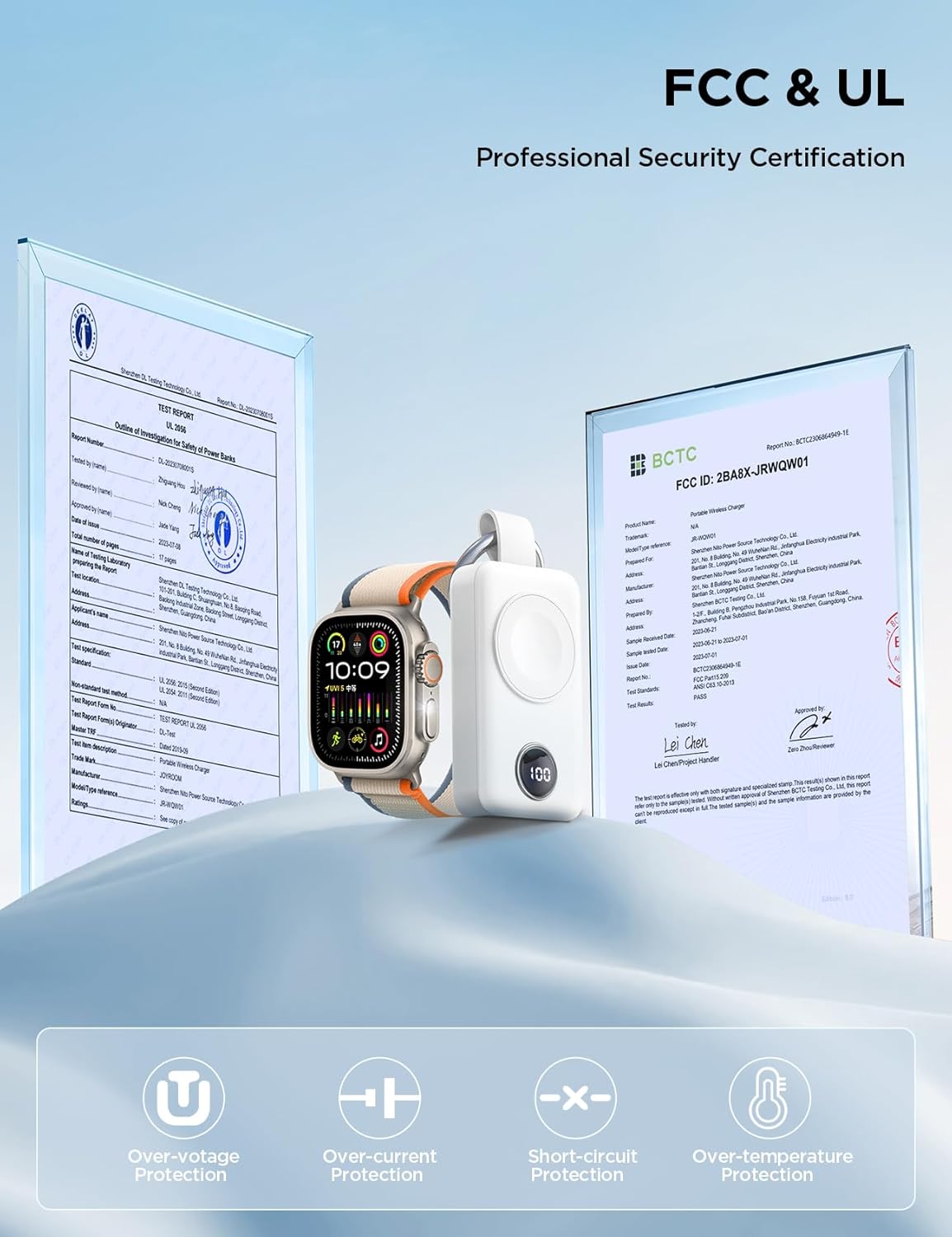 - 2000 mAh AKKUKAPAZITÄT: Lassen Sie nicht zu, dass ein schwacher Akku Ihren Tag einschränkt! Mit einer Kapazität von 2000mAh kann das tragbare kabellose Ladegerät von Joyroom Ihre Apple Watch 3-4 Mal oder Ihre Apple Watch Ultra 2 Mal vollständig