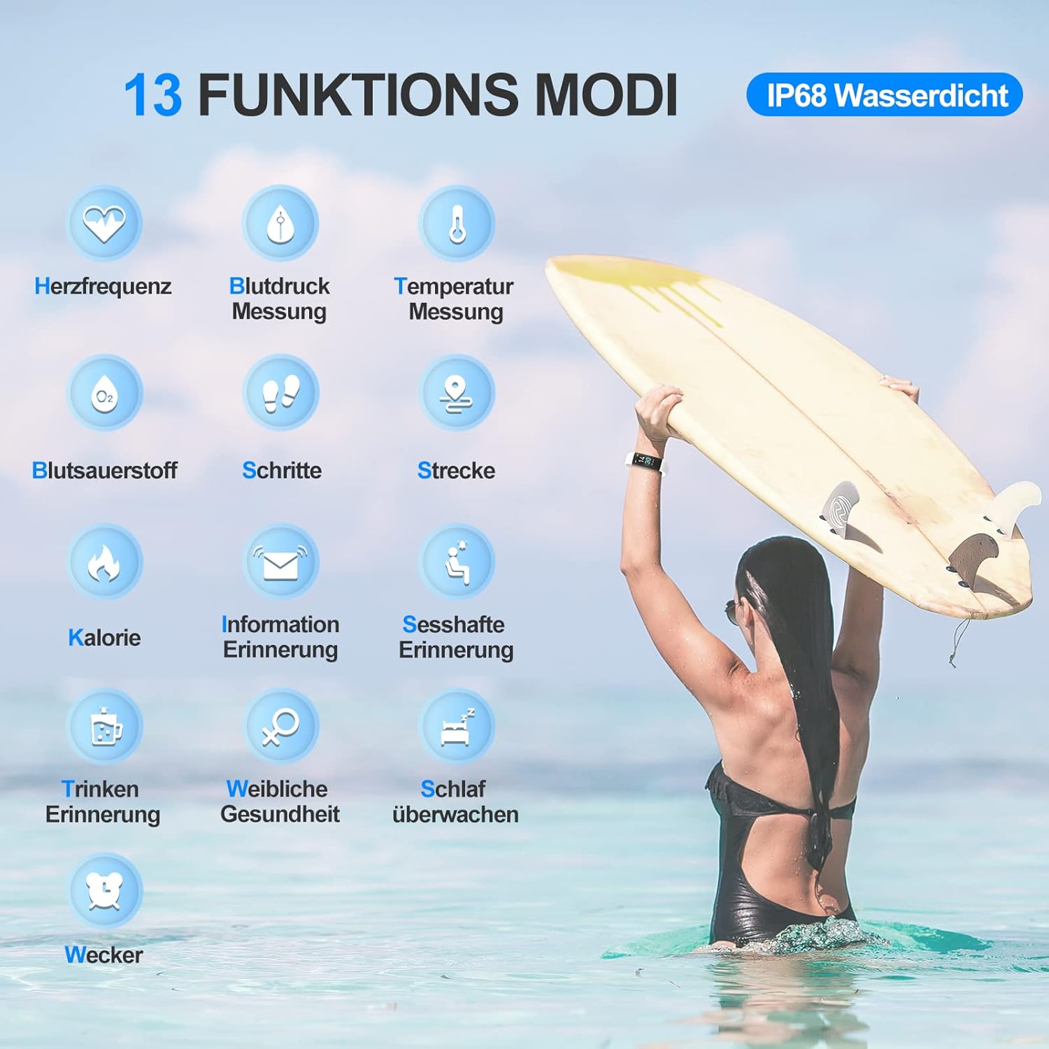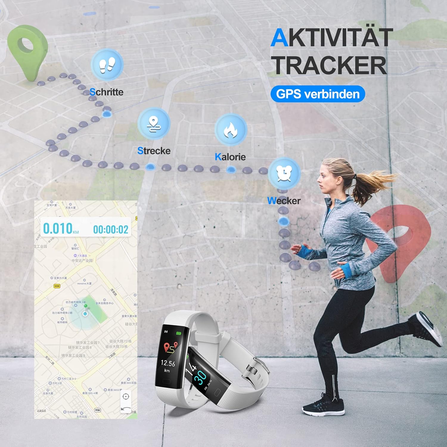 - Ganztägige Aktivitätsverfolgung Armband – Informieren Sie sich, wie viele Schritte Sie gegangen sind und wie viele Kalorien Sie wirklich verbrannt haben und wie viel Zeit Sie aktiv waren. Weitere Funktionen: Wasserdicht IP68, Alarm,
