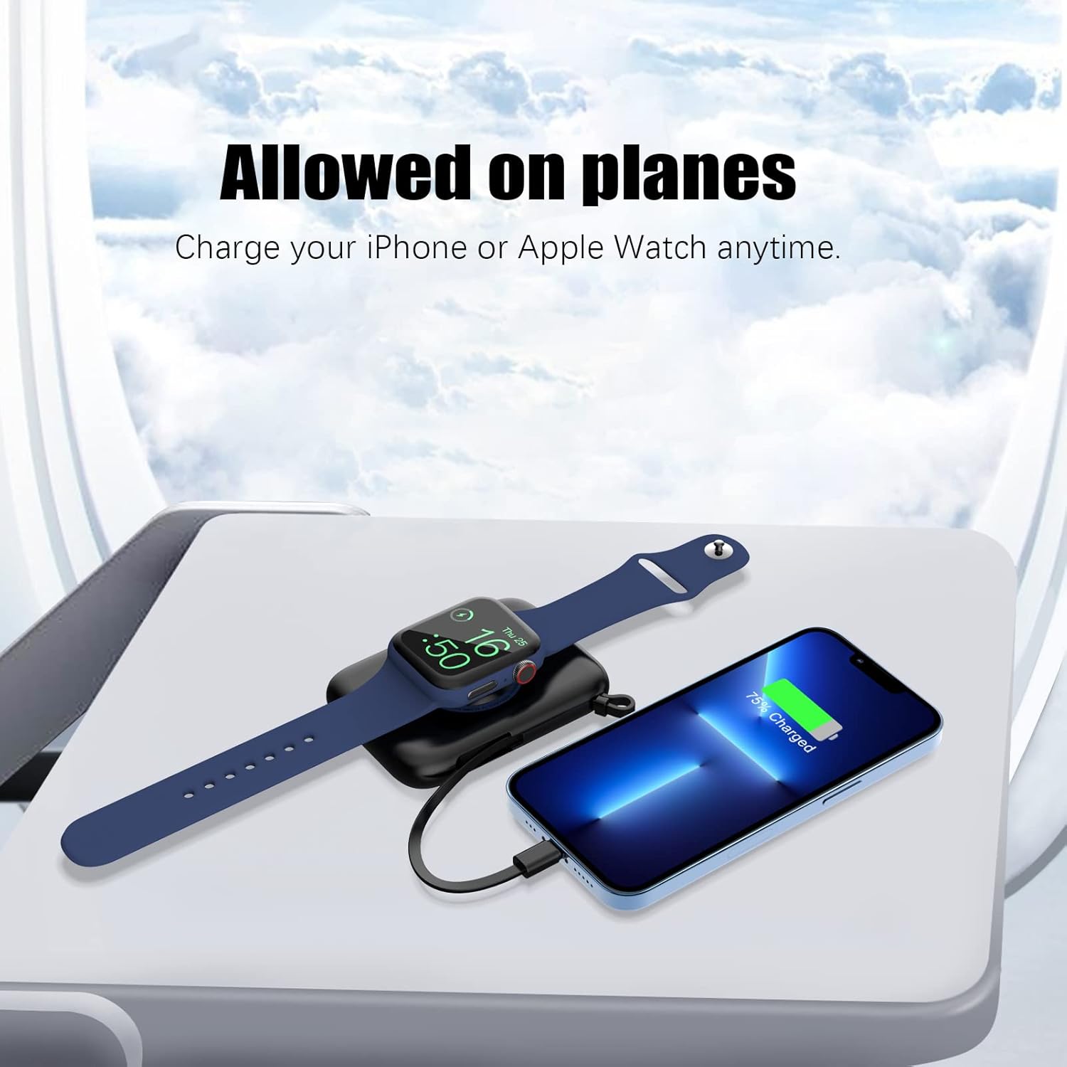 - Eingebaute 5000 mAh & Ladeanzeige - Das tragbare Ladegerät hat einen eingebauten 5000 mAh, eine volle Ladung kann eine Uhr 8 Mal aufladen oder ein Mobiltelefon einmal aufladen. Kommt mit vier Leistungsanzeigen, jede Anzeige stellt 25% der Leistung dar,