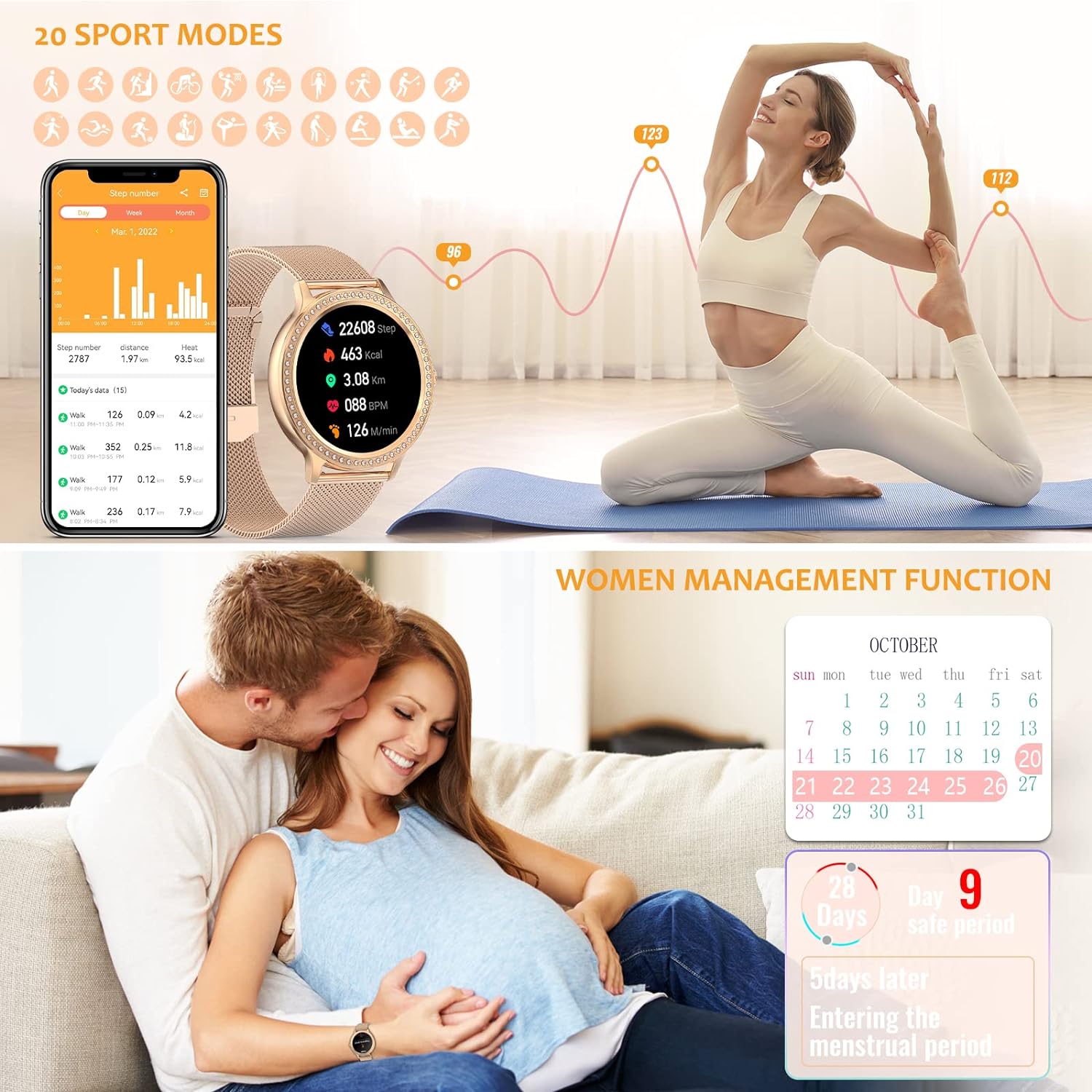 - 【Intelligenter Wecker+neue Funktionen】Diese intelligente Uhr für Frauen hat auch viele Funktionen wie Telefon-Finder, intelligente Sprachassistent, Wettervorhersage, Frauen Menstruationszyklus Erinnerung, Musik-Steuerung, Kamera-Steuerung,