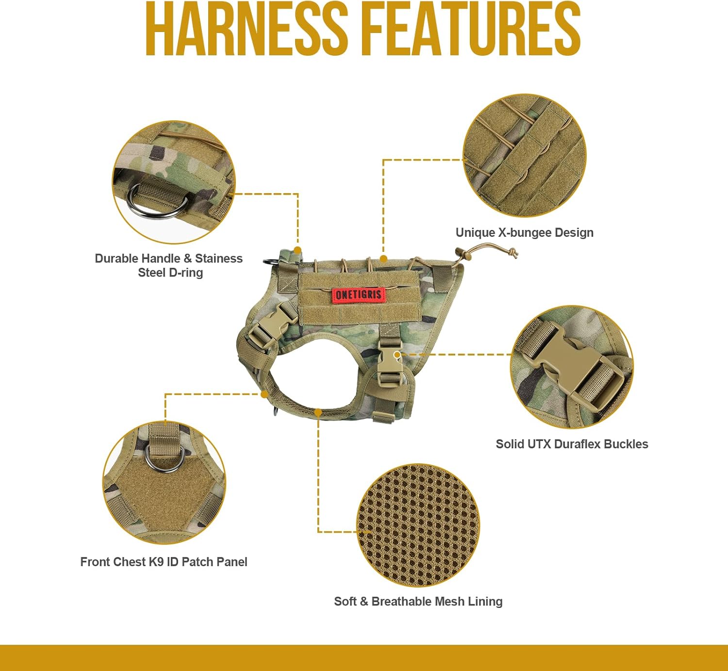 - OneTigris Hundegeschirr im Militär-Stil: Das grosse OneTigris Hundegeschirr verfügt über zwei Gurte auf jeder Seite sowie ein Haken- und Schnallen-Panel zur einfachen Befestigung von Taschen oder ID-Schildern; Das Hundegeschirr ist nicht für schwere