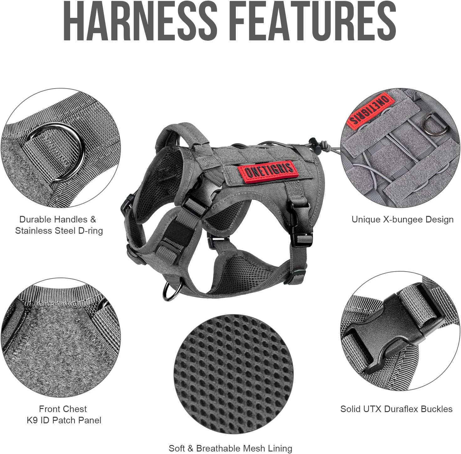 - OneTigris Hundegeschirr im Militär-Stil: Das grosse OneTigris Hundegeschirr verfügt über zwei Gurte auf jeder Seite sowie ein Haken- und Schnallen-Panel zur einfachen Befestigung von Taschen oder ID-Schildern; Das Hundegeschirr ist nicht für schwere