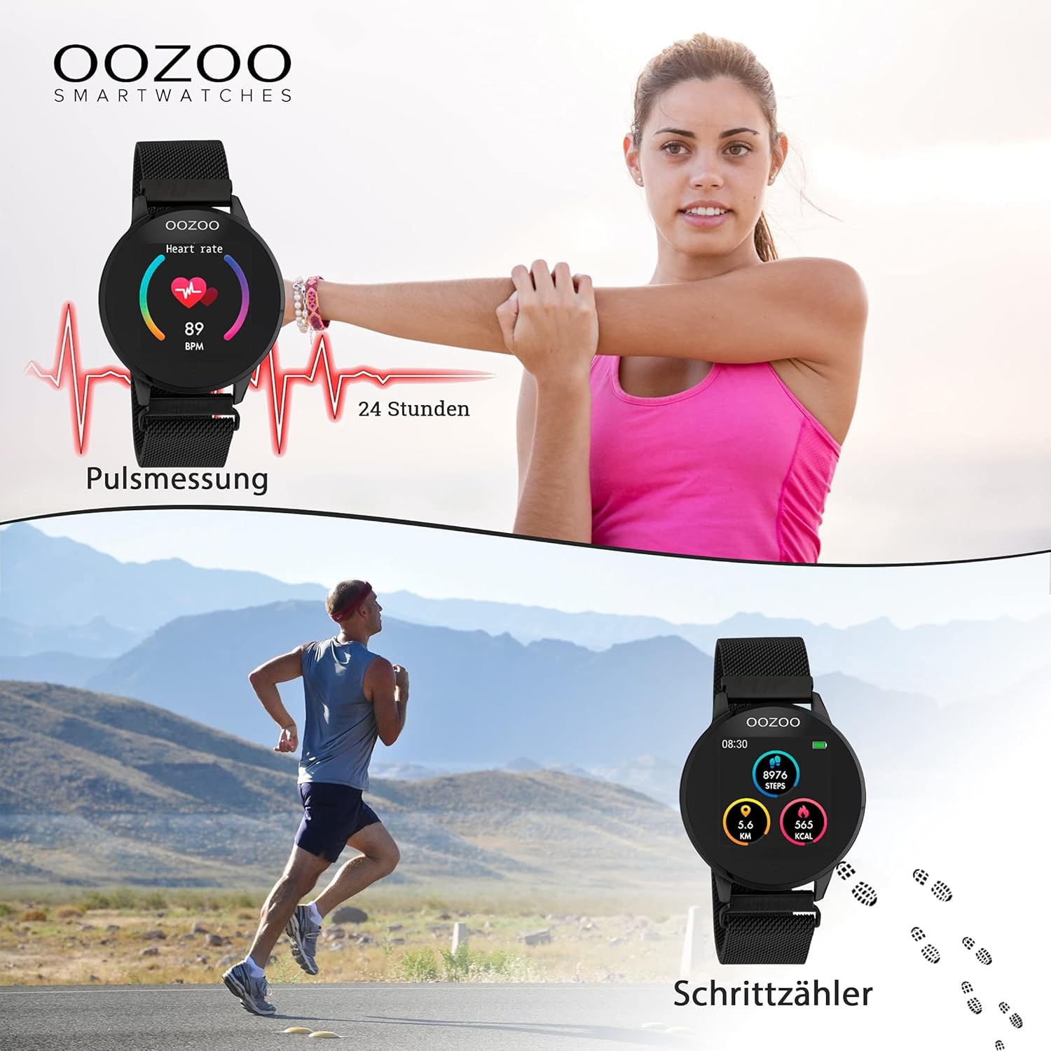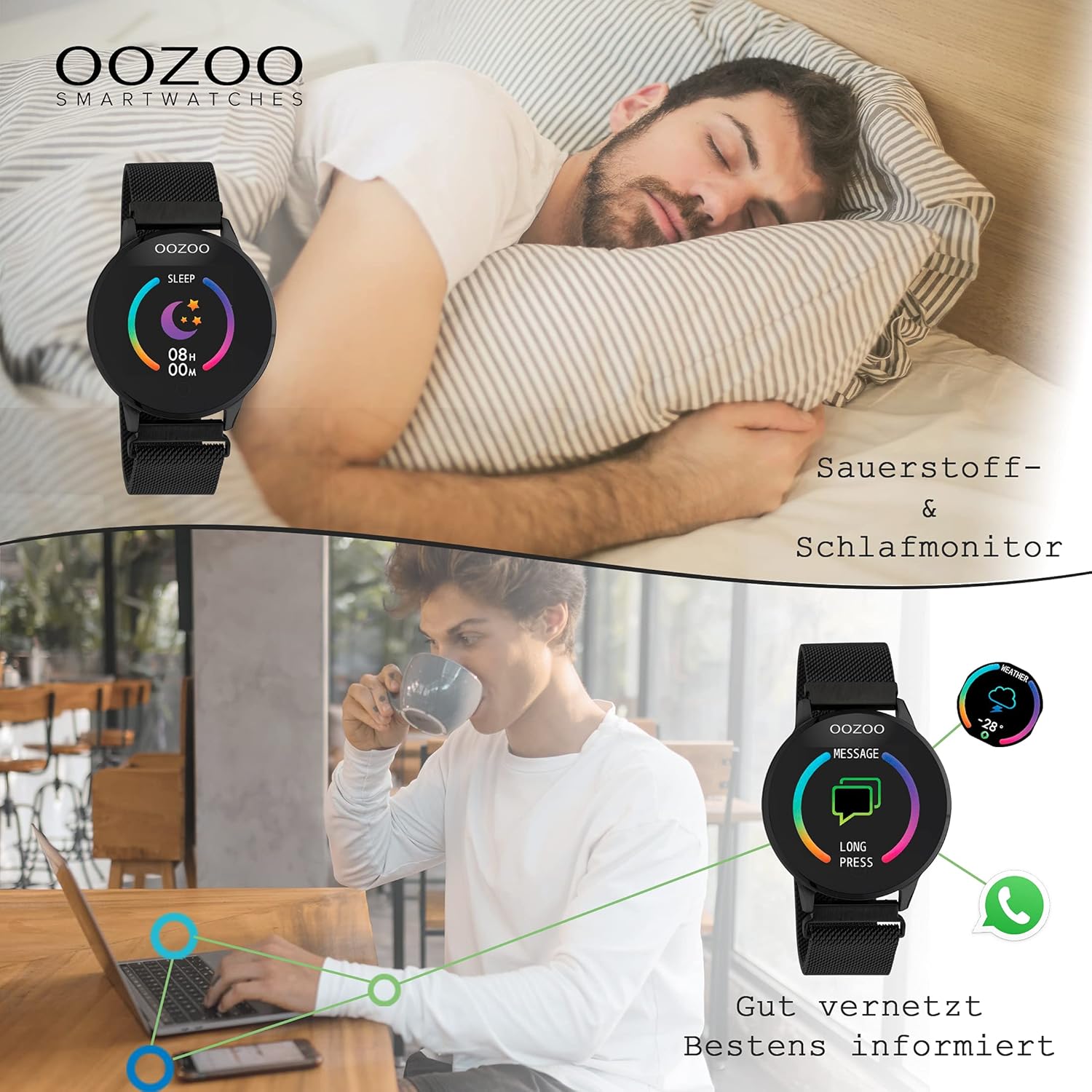 - 🔀 MULTIFUNKTIONAL - Pulsuhr rund mit Musiksteuerung, Kamerasteuerung, Stoppuhr, 3 ver. Oozoo Ziffernblättern sowie weitere Ziffernblätter, auch individualisierbar, über die App.