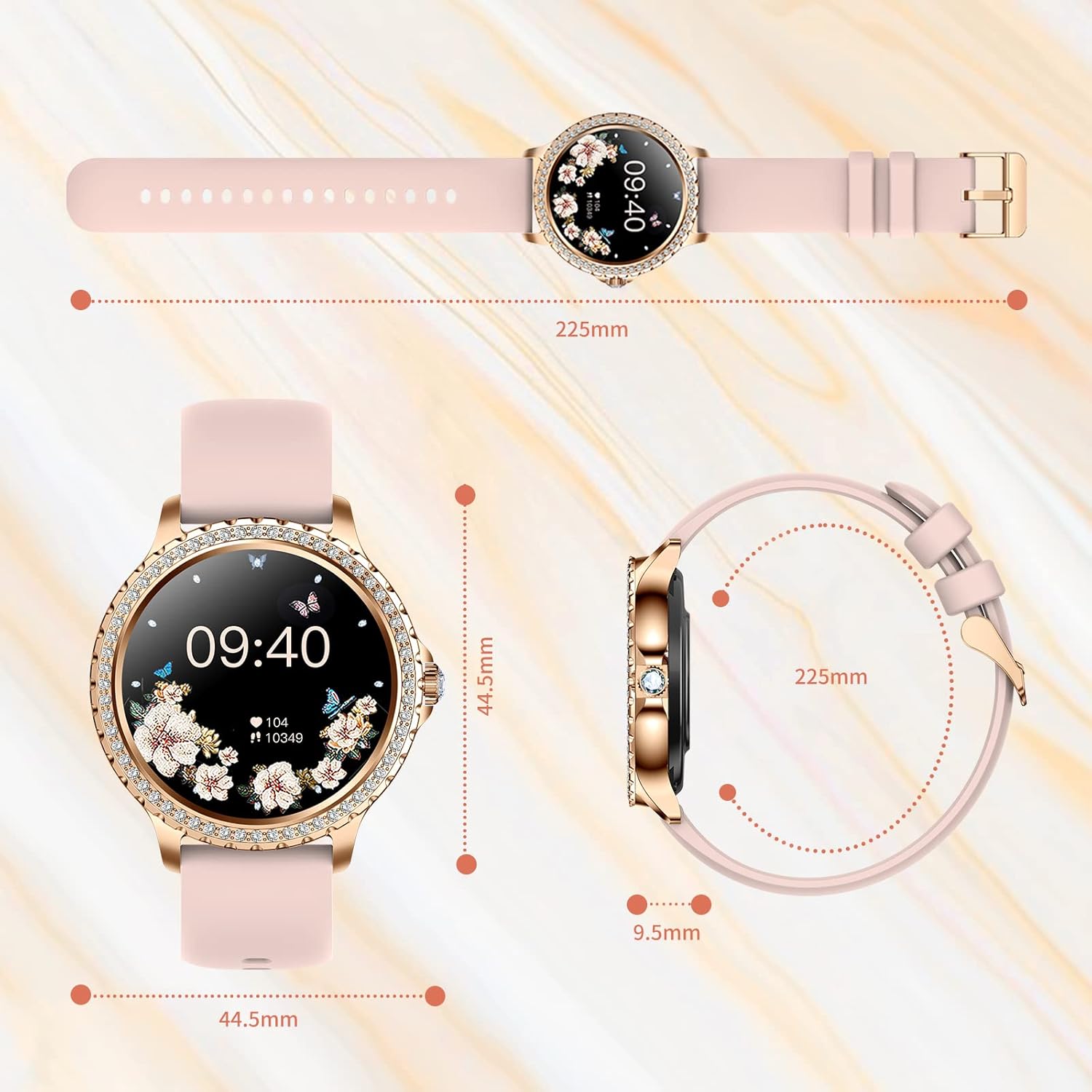- 💎Smart Assistant for Life:Smartwatch für Frauen ist mit den meisten Smartphones mit Android-System 4.4 und iOS 8.4-Version oder höher kompatibel. Die Smartwatch Rosegold, die SMS senden und anrufen kann, verfügt über einen integrierten