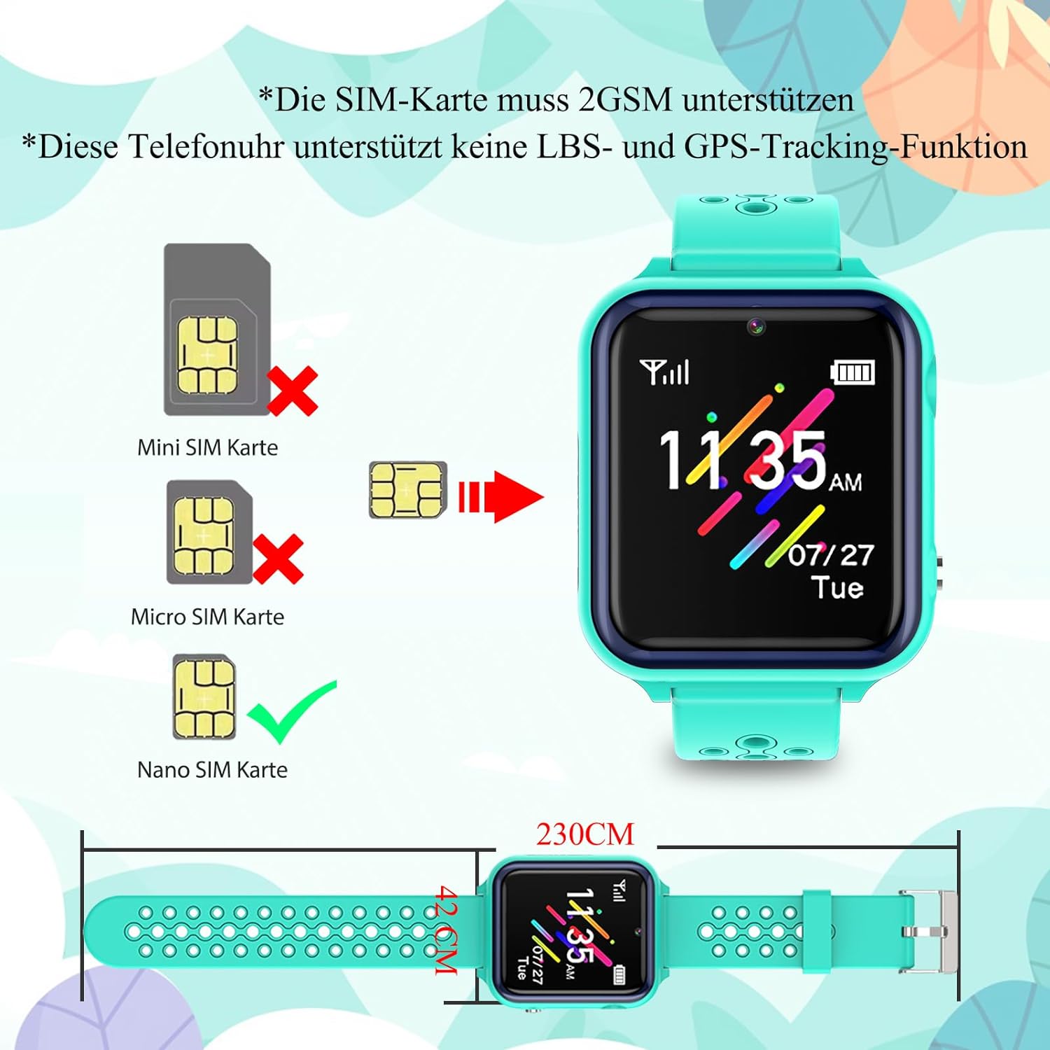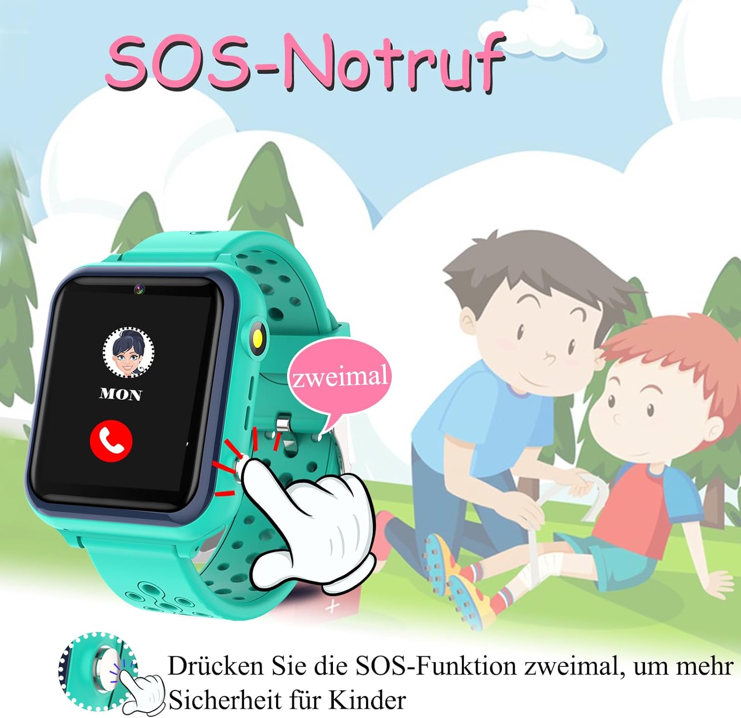 - ⌚🆘【Halten Sie Kinder sicher mit SOS-Anruf】 Eltern können die Kinder durch die Kinder Smartwatch anrufen, die Uhr kann Anrufe tätigen und empfangen.,Wenn ein Kind in Gefahr ist und Hilfe braucht können Kinder die Power-Taste zweimal drücken,