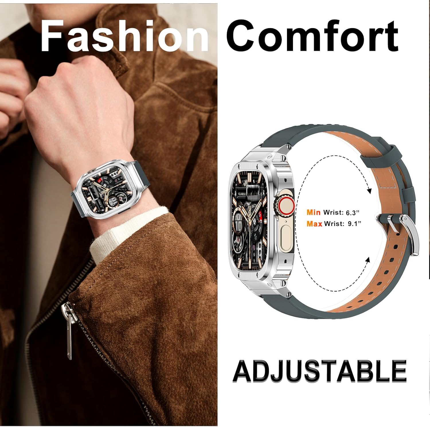 - 【Kompatibel】Das Uhrengehäuse/Band ist kompatibel mit iWatch Ultra 49mm, das Band ist geeignet für Handgelenkgrösse 6.3"-9.1", die Bänder können jederzeit angepasst werden, um perfekt auf Ihr Handgelenk zu passen.(iWatch nicht enthalten)