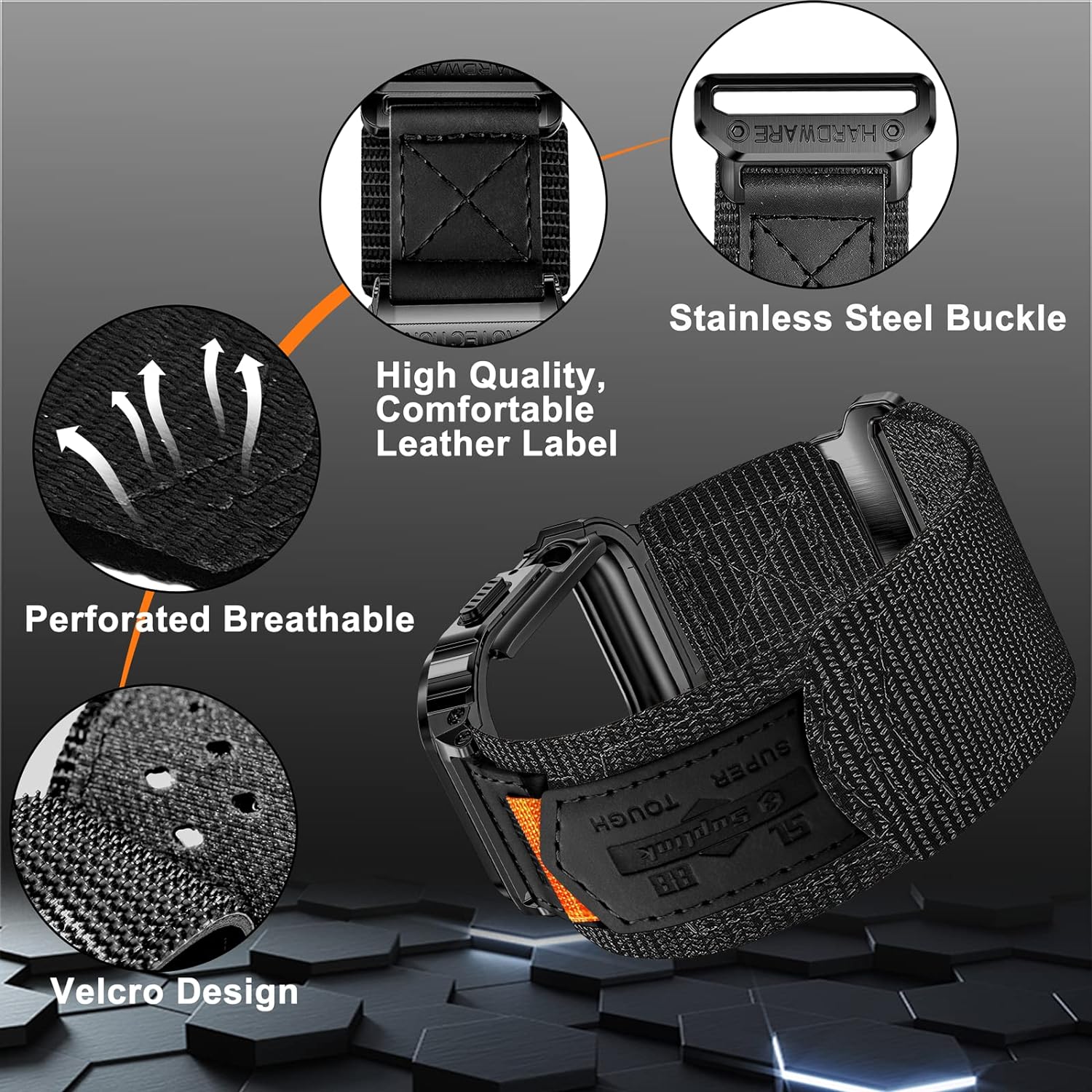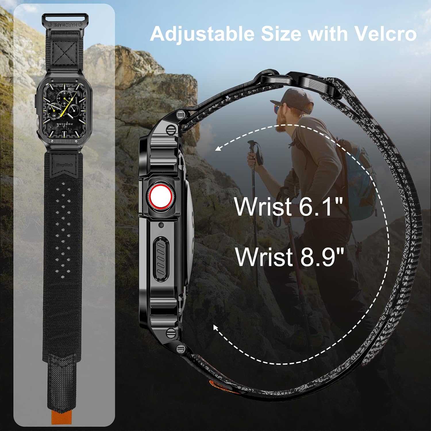 - 【Kompatibel】Das Uhrengehäuse/Band ist kompatibel mit der iWatch 40/41mm Serie SE/8/7/6/5/4, das Band ist geeignet für die Handgelenksgrösse:Medium=6.1''-7.1''/Large=6.7''-8.9''.Das Band ist ein Klettverschluss-Design, das leicht angepasst werden