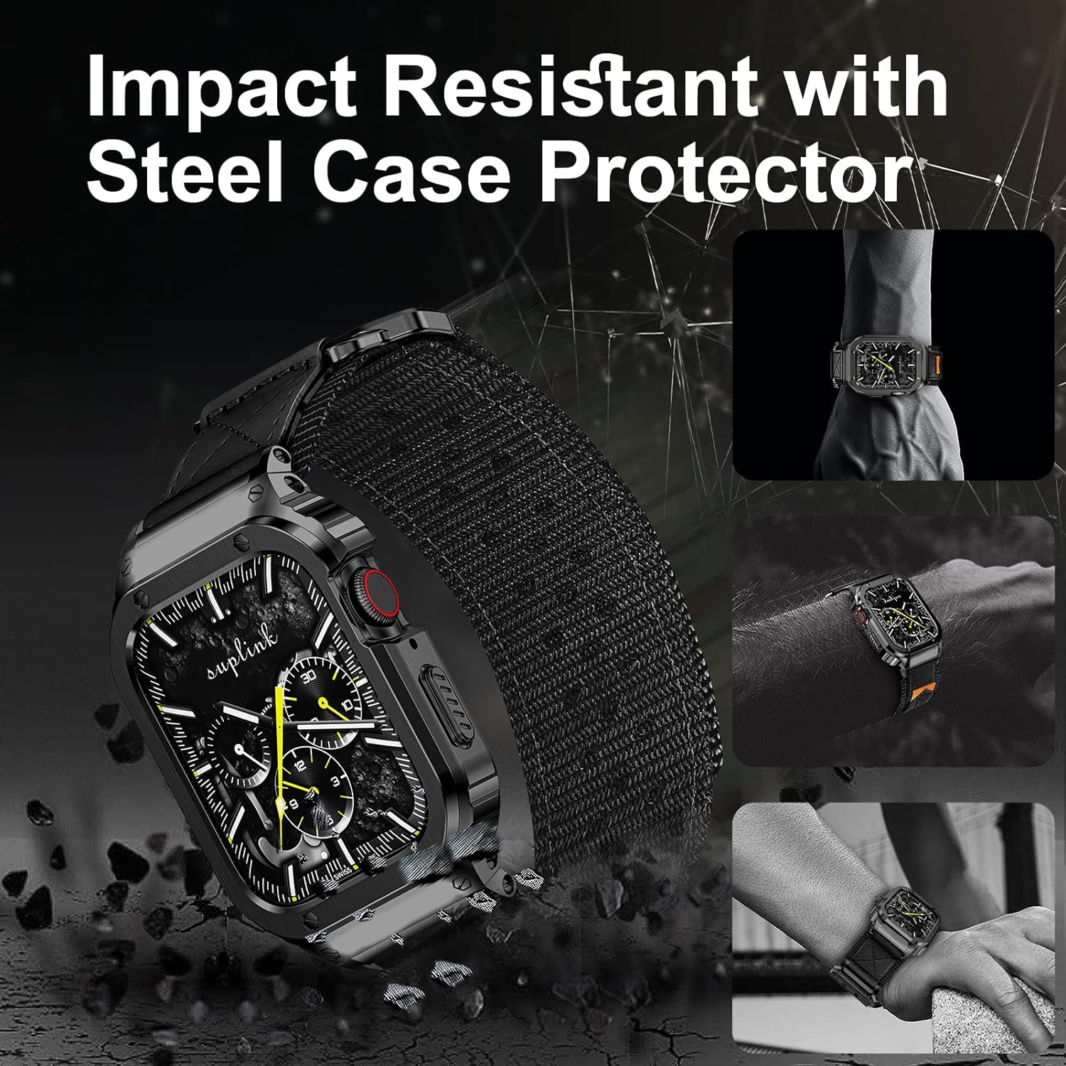 - 【Edelstahlgehäuse】Das Gehäuse der Apple Watch ist aus hochwertigem 316L-Stahl gefertigt, der robust, stossfest und sturzsicher ist.Dieses einteilige Band ist robust und stimmungsvoll, perfekt für geschäftliche und legere Anlässe.