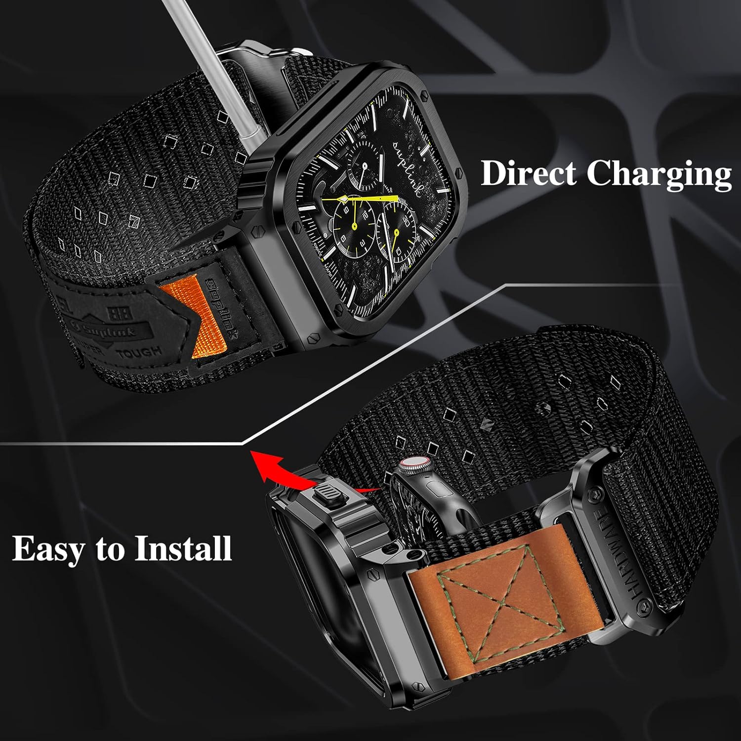- 【Direktes Aufladen】Das iwatch-Band ist mit einem Rundum-Rahmenschutz (ohne untere Abdeckung) entworfen, der bequem für Sie ist, um direkt aufzuladen, ohne das Gehäuse zu entfernen, geeignet für jedes Ladegerät. Es gibt präzise Löcher in der