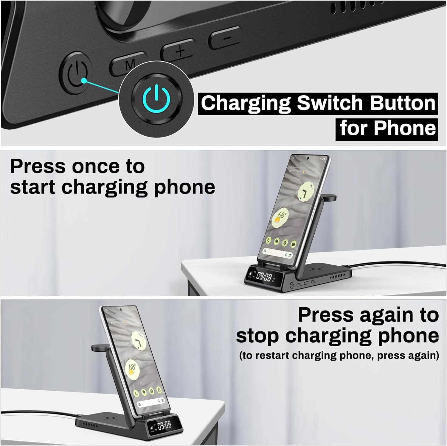 - Multifunktionsanzeige: Mit der integrierten Uhranzeige verleiht Google kabellose Ladestation jedem Raum eine elegante Note. Passen Sie die Helligkeit des Uhrdisplay-Bildschirms nach Ihren Vorlieben und der Umgebungsbeleuchtung des Raums an. Egal ob auf