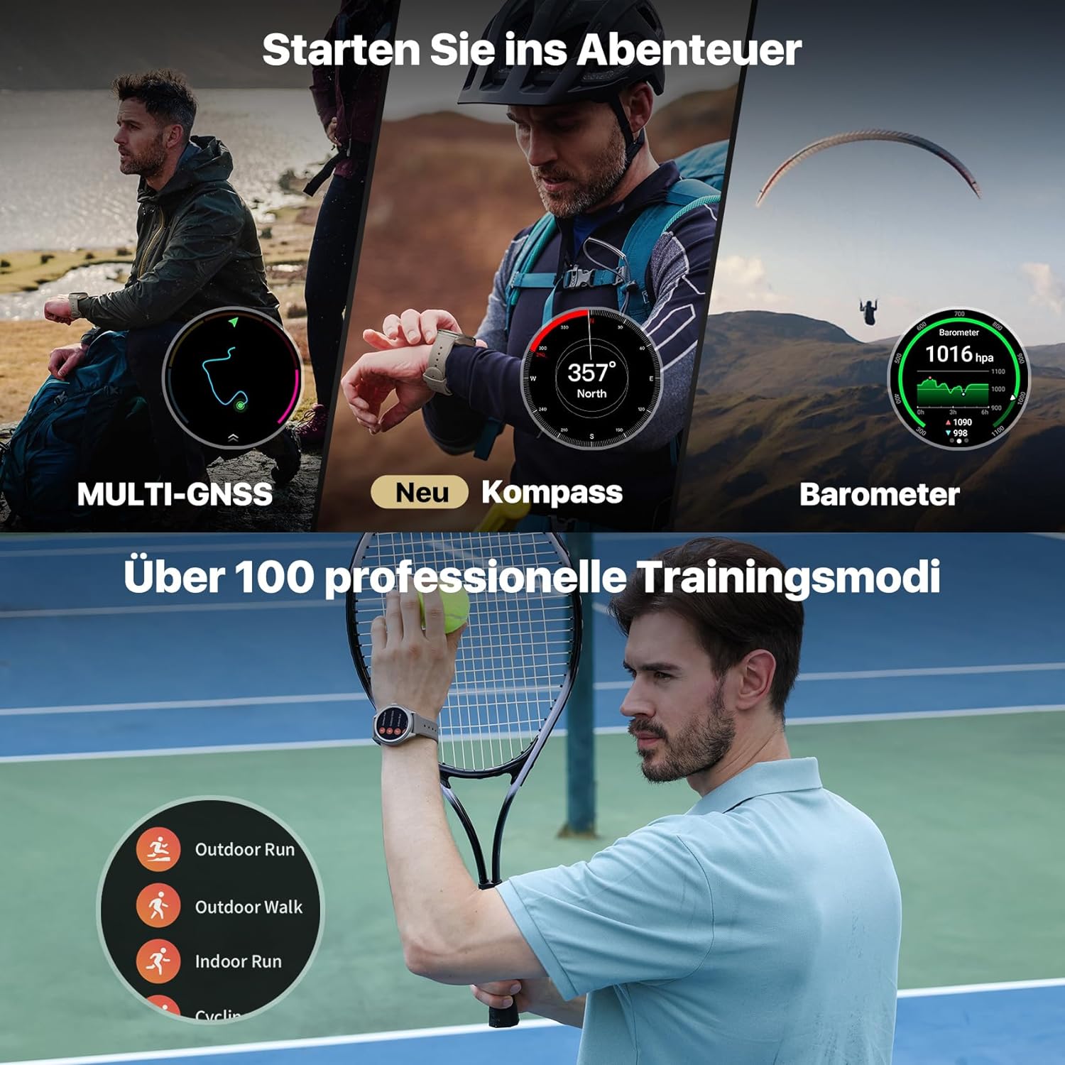 - 【Flaggschiffmodell, verbessertes Premium-Design】 Stilvolles und funktionales Design, 1,43-Zoll-OLED-Bildschirm (466 x 466 hochauflösend) mit automatisch einstellbarer Helligkeit, Corning Gorilla Anti-Fingerabdruck-Deckglas. Duales Display mit