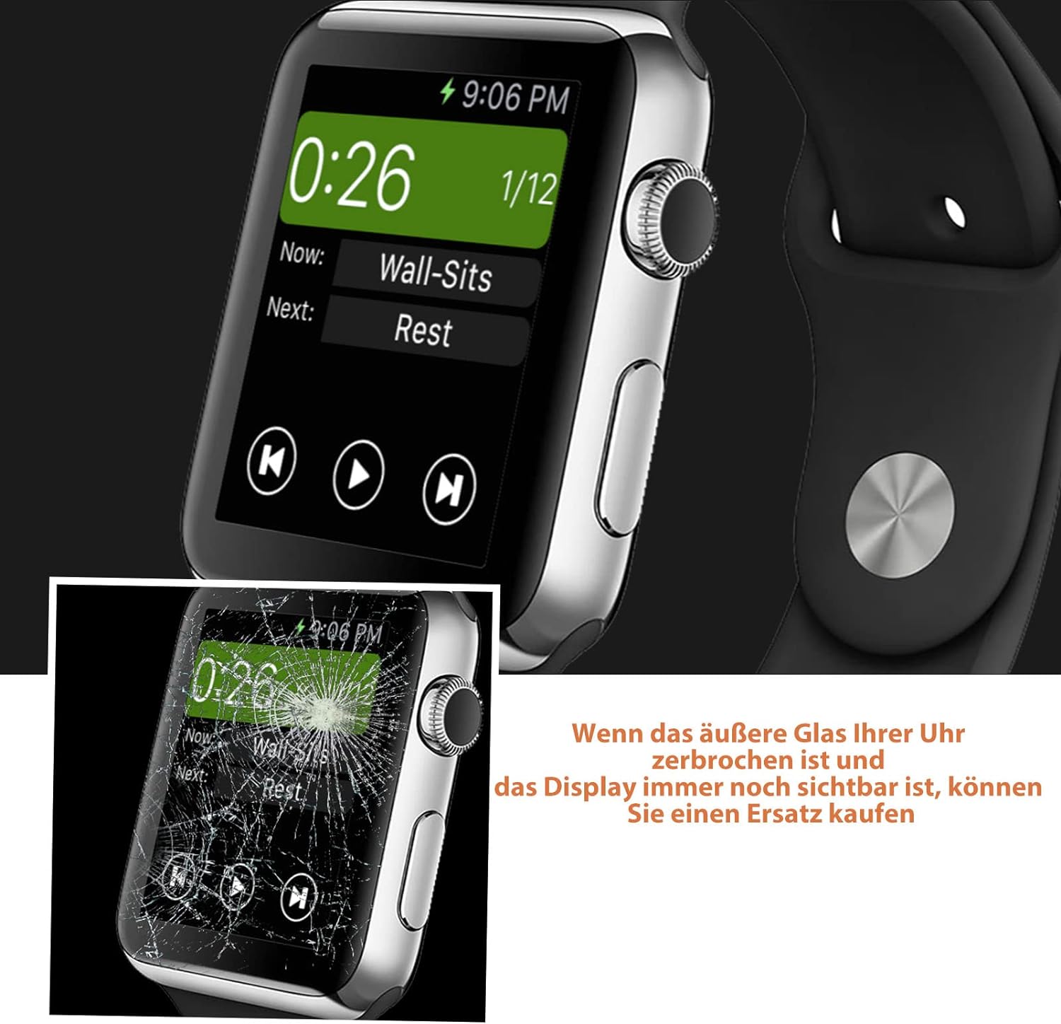 - [Anwendungssituation] Nur das externe Glas der Smartwatch wird ersetzt, LCD- und Touch-Funktionen sind ausgeschlossen. Für den Fall, dass das externe Glas beschädigt wird, während LCD- und Touch-Funktionen normal sind, können Sie Ersatzservice
