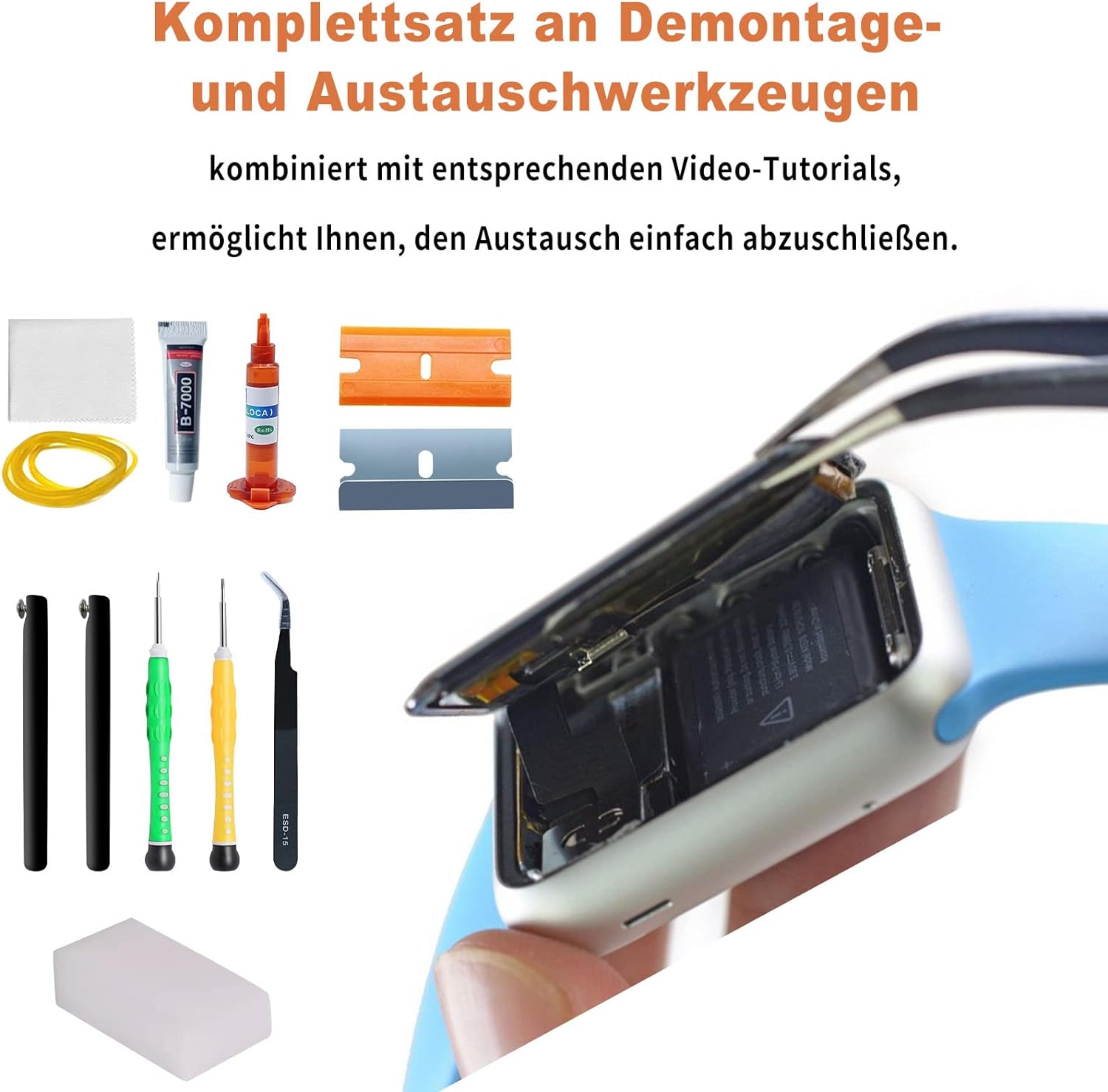 - [Anwendbares Modell] Das Gerät ist kompatibel mit Apple Watch Serie 7 45 mm. Vor dem Kauf überprüfen Sie bitte das Modell Ihrer vorhandenen Uhr und dessen Version. (Hinweis: Vor der Wartung und Demontage, bitte sehen Sie sich das Video über Wartung
