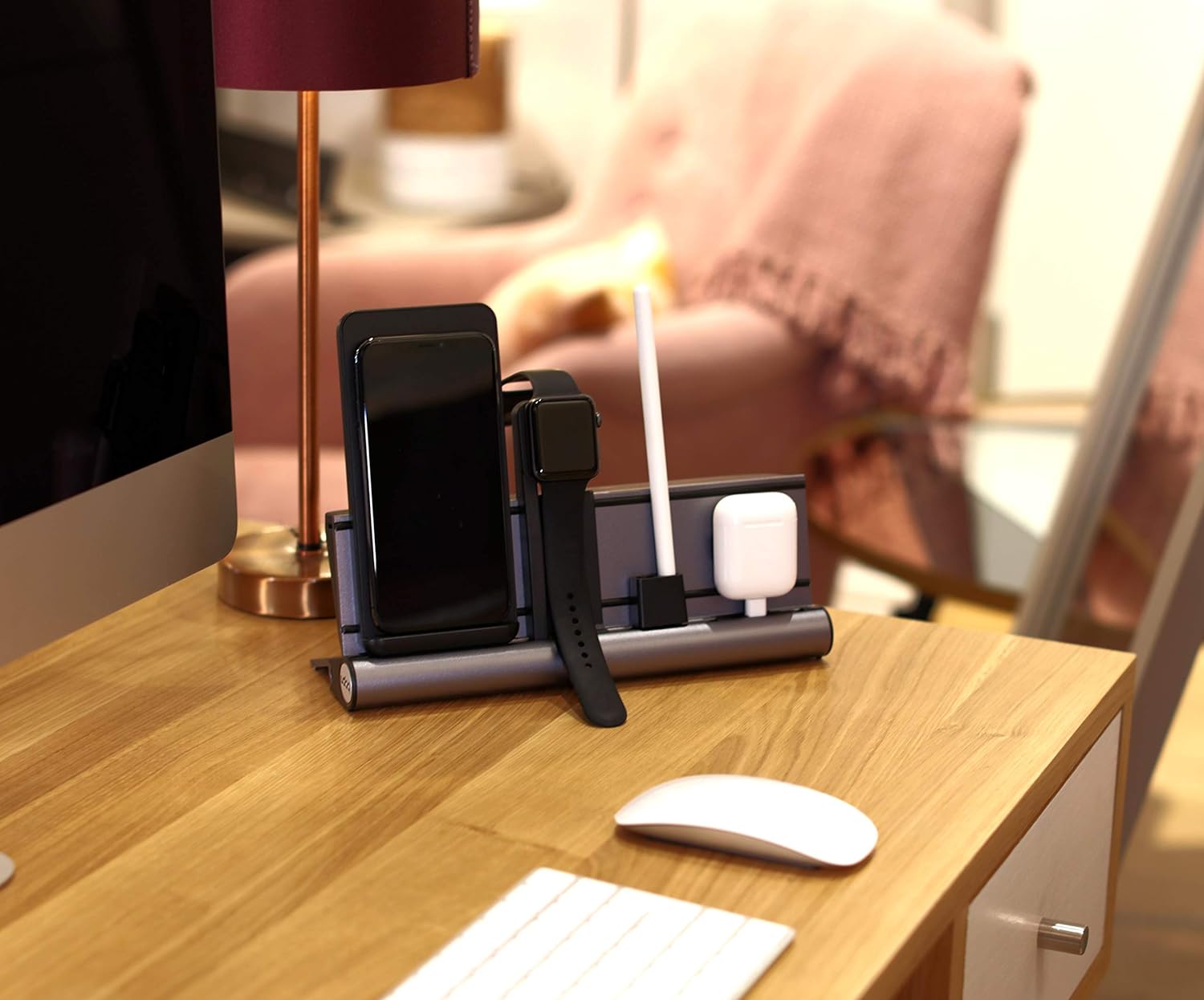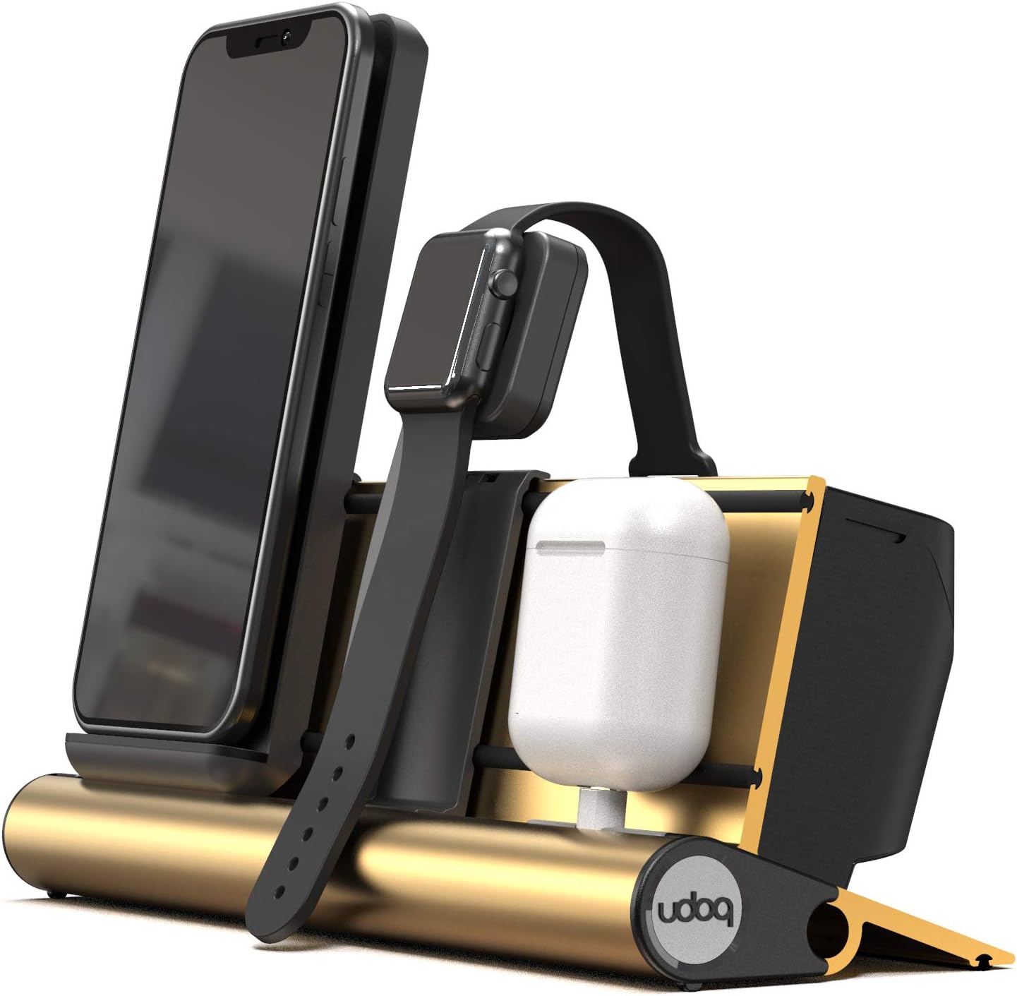- DAS PERFEKTE LADEDOCK für Apple Watch, Telefon, Kopfhörer in deutschem Funktions-Design | Der Apple Ladestecker ist in der Höhe verstellbar (ermöglicht das Laden mit Schutz-Hülle) | Alle Adapter sind seitlich flexibel verschieb- und austauschbar