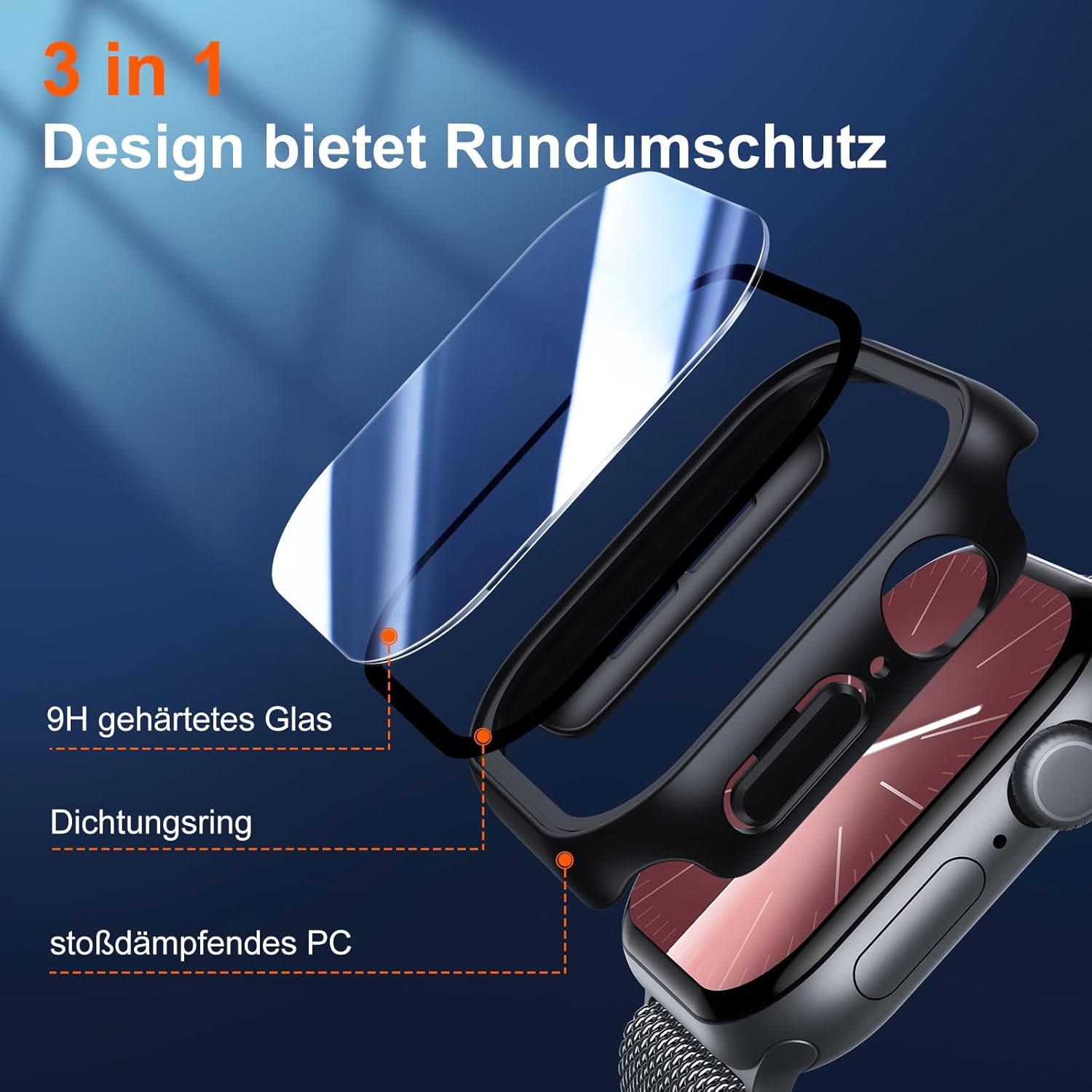 - Hochwertig: Diese aus hochwertigem, kratzfestem pc und Glas material gefertigte Hülle deckt die gesamten vorderen und gebogenen Kanten der watch ab und bietet einen umfassenden Schutz für Ihre watch gegen Kratzer, Stürze und Stösse